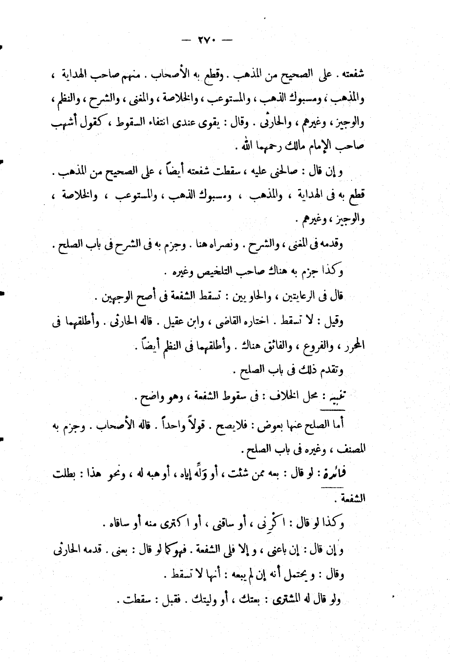 شُفْعَتُهُ. عَلَى الصَّحِيحِ مِنْ الْمَذْهَبِ. وَقَطَعَ بِهِ الْأَصْحَابُ. مِنْهُمْ صَاحِبُ الْهِدَايَةِ، وَالْمُذْهَبِ وَمَسْبُوكِ الذَّهَبِ، وَالْمُسْتَوْعِبِ، وَالْخُلَاصَةِ، وَالْمُغْنِي، وَالشَّرْحِ، وَالنَّظْمِ، وَالْوَجِيزِ، وَغَيْرِهِمْ، وَالْحَارِثِيِّ. وَقَالَ: يَقْوَى عِنْدِي انْتِفَاءُ السُّقُوطِ، كَقَوْلِ أَشْهَبَ صَاحِبِ الْإِمَامِ مَالِكٍ رَحِمَهُمَا اللَّهُ. وَإِنْ قَالَ: صَالِحْنِي عَلَيْهِ، سَقَطَتْ شُفْعَتُهُ أَيْضًا، عَلَى الصَّحِيحِ مِنْ الْمَذْهَبِ. قَطَعَ بِهِ فِي الْهِدَايَةِ، وَالْمُذْهَبِ وَمَسْبُوكِ الذَّهَبِ، وَالْمُسْتَوْعِبِ، وَالْخُلَاصَةِ، وَالْوَجِيزِ، وَغَيْرِهِمْ. وَقَدَّمَهُ فِي الْمُغْنِي، وَالشَّرْحِ. وَنَصَرَاهُ هُنَا. وَجَزَمَ بِهِ فِي الشَّرْحِ فِي بَابِ الصُّلْحِ. وَكَذَا جَزَمَ بِهِ هُنَاكَ صَاحِبُ التَّلْخِيصِ وَغَيْرُهُ. قَالَ فِي الرِّعَايَتَيْنِ، وَالْحَاوِيَيْنِ: تَسْقُطُ الشُّفْعَةُ فِي أَصَحِّ الْوَجْهَيْنِ. وَقِيلَ: لَا تَسْقُطُ. اخْتَارَهُ الْقَاضِي، وَابْنُ عَقِيلٍ. قَالَهُ الْحَارِثِيُّ. وَأَطْلَقَهُمَا فِي الْمُحَرَّرِ، وَالْفُرُوعِ، وَالْفَائِقِ هُنَاكَ. وَأَطْلَقَهُمَا فِي النَّظْمِ أَيْضًا. وَتَقَدَّمَ ذَلِكَ فِي بَابِ الصُّلْحِ.