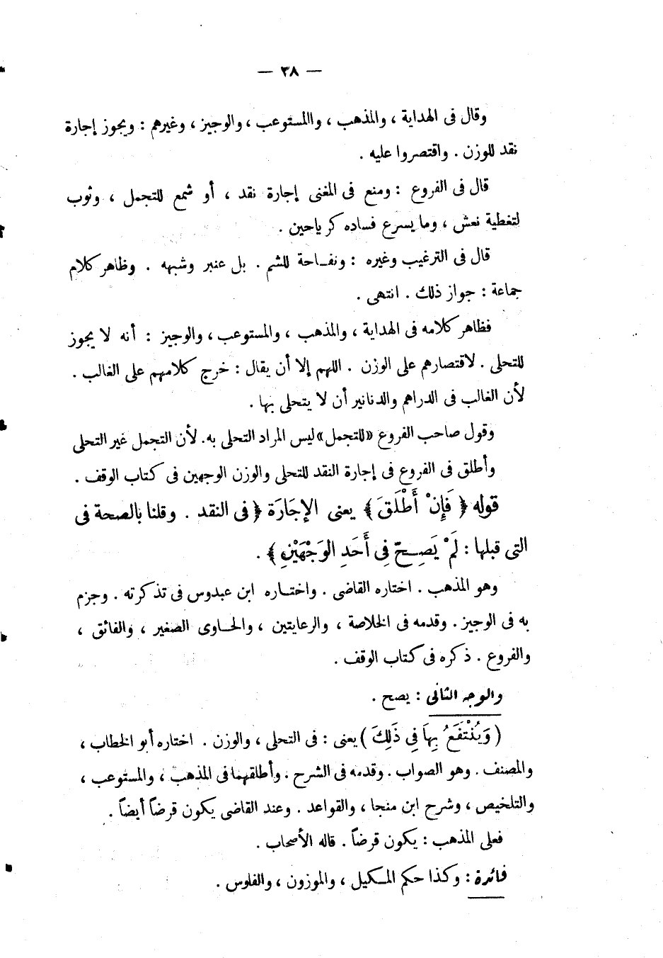 وَقَالَ فِي الْهِدَايَةِ، وَالْمُذْهَبِ، وَالْمُسْتَوْعِبِ، وَالْوَجِيزِ، وَغَيْرِهِمْ: وَيَجُوزُ إجَارَةُ نَقْدٍ لِلْوَزْنِ. وَاقْتَصَرُوا عَلَيْهِ. قَالَ فِي الْفُرُوعِ: وَمَنَعَ فِي الْمُغْنِي إجَارَةَ نَقْدٍ، أَوْ شَمْعٍ لِلتَّجَمُّلِ، وَثَوْبٍ لِتَغْطِيَةِ نَعْشٍ، وَمَا يُسْرِعُ فَسَادُهُ كَرَيَاحِينَ. قَالَ فِي التَّرْغِيبِ وَغَيْرِهِ: وَنَفَاحَةٌ لِلشَّمِّ. بَلْ عَنْبَرٌ وَشَبَهُهُ. وَظَاهِرُ كَلَامِ جَمَاعَةٍ: جَوَازُ ذَلِكَ. انْتَهَى. فَظَاهِرُ كَلَامِهِ فِي الْهِدَايَةِ، وَالْمُذْهَبِ، وَالْمُسْتَوْعِبِ، وَالْوَجِيزِ: أَنَّهُ لَا يَجُوزُ لِلتَّحَلِّي لِاقْتِصَارِهِمْ عَلَى الْوَزْنِ. اللَّهُمَّ إلَّا أَنْ يُقَالَ: خَرَجَ كَلَامُهُمْ عَلَى الْغَالِبِ. لِأَنَّ الْغَالِبَ فِي الدَّرَاهِمِ وَالدَّنَانِيرِ أَنْ لَا يُتَحَلَّى بِهَا. وَقَوْلُ صَاحِبِ الْفُرُوعِ " لِلتَّجَمُّلِ " لَيْسَ الْمُرَادُ التَّحَلِّيَ بِهِ. لِأَنَّ التَّجَمُّلَ غَيْرُ التَّحَلِّي وَأَطْلَقَ فِي الْفُرُوعِ فِي إجَارَةِ النَّقْدِ لِلتَّحَلِّي وَالْوَزْنِ الْوَجْهَيْنِ فِي كِتَابِ الْوَقْفِ. قَوْلُهُ (فَإِنْ أَطْلَقَ) يَعْنِي الْإِجَارَةَ (فِي النَّقْدِ. وَقُلْنَا بِالصِّحَّةِ فِي الَّتِي قَبْلَهَا: لَمْ يَصِحَّ فِي أَحَدِ الْوَجْهَيْنِ) . وَهُوَ الْمَذْهَبُ. اخْتَارَهُ الْقَاضِي. وَاخْتَارَهُ ابْنُ عَبْدُوسٍ فِي تَذْكِرَتِهِ. وَجَزَمَ بِهِ فِي الْوَجِيزِ. وَقَدَّمَهُ فِي الْخُلَاصَةِ، وَالرِّعَايَتَيْنِ، وَالْحَاوِي الصَّغِيرِ، وَالْفَائِقِ، وَالْفُرُوعِ. ذَكَرَهُ فِي كِتَابِ الْوَقْفِ.