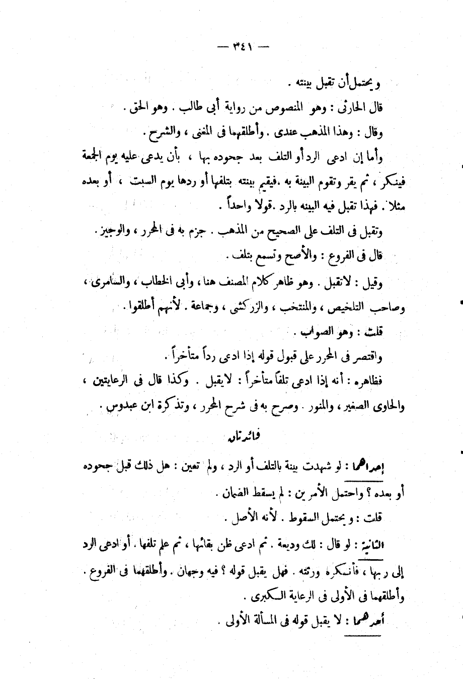 وَيَحْتَمِلُ أَنْ تُقْبَلَ بَيِّنَتُهُ. قَالَ الْحَارِثِيُّ: وَهُوَ الْمَنْصُوصُ مِنْ رِوَايَةِ أَبِي طَالِبٍ. وَهُوَ الْحَقُّ. وَقَالَ: وَهَذَا الْمَذْهَبُ عِنْدِي. وَأَطْلَقَهُمَا فِي الْمُغْنِي، وَالشَّرْحِ. وَأَمَّا إنْ ادَّعَى الرَّدَّ أَوْ التَّلَفَ بَعْدَ جُحُودِهِ بِهَا، بِأَنْ يَدَّعِيَ عَلَيْهِ يَوْمَ الْجُمُعَةِ فَيُنْكِرَ، ثُمَّ يُقِرَّ وَتَقُومَ الْبَيِّنَةُ بِهِ. فَيُقِيمَ بَيِّنَتَهُ بِتَلَفِهَا أَوْ رَدِّهَا يَوْمَ السَّبْتِ، أَوْ بَعْدَهُ مَثَلًا. فَهَذَا تُقْبَلُ فِيهِ الْبَيِّنَةُ بِالرَّدِّ. قَوْلًا وَاحِدًا. وَتُقْبَلُ فِي التَّلَفِ عَلَى الصَّحِيحِ مِنْ الْمَذْهَبِ. جَزَمَ بِهِ فِي الْمُحَرَّرِ، وَالْوَجِيزِ. قَالَ فِي الْفُرُوعِ: وَالْأَصَحُّ وَتُسْمَعُ بِتَلَفٍ. وَقِيلَ: لَا تُقْبَلُ. وَهُوَ ظَاهِرُ كَلَامِ الْمُصَنِّفِ هُنَا، وَأَبِي الْخَطَّابِ، وَالسَّامِرِيِّ، وَصَاحِبِ التَّلْخِيصِ، وَالْمُنْتَخَبِ، وَالزَّرْكَشِيِّ، وَجَمَاعَةٍ. لِأَنَّهُمْ أَطْلَقُوا. قُلْت: وَهُوَ الصَّوَابُ. وَاقْتَصَرَ فِي الْمُحَرَّرِ عَلَى قَبُولِ قَوْلِهِ إذَا ادَّعَى رَدًّا مُتَأَخِّرًا. فَظَاهِرُهُ: أَنَّهُ إذَا ادَّعَى تَلَفًا مُتَأَخِّرًا: لَا يُقْبَلُ. كَذَا قَالَ فِي الرِّعَايَتَيْنِ، وَالْحَاوِي الصَّغِيرِ وَالْمُنَوِّرِ. وَصَرَّحَ بِهِ فِي شَرْحِ الْمُحَرَّرِ، وَتَذْكِرَةِ ابْنِ عَبْدُوسٍ.