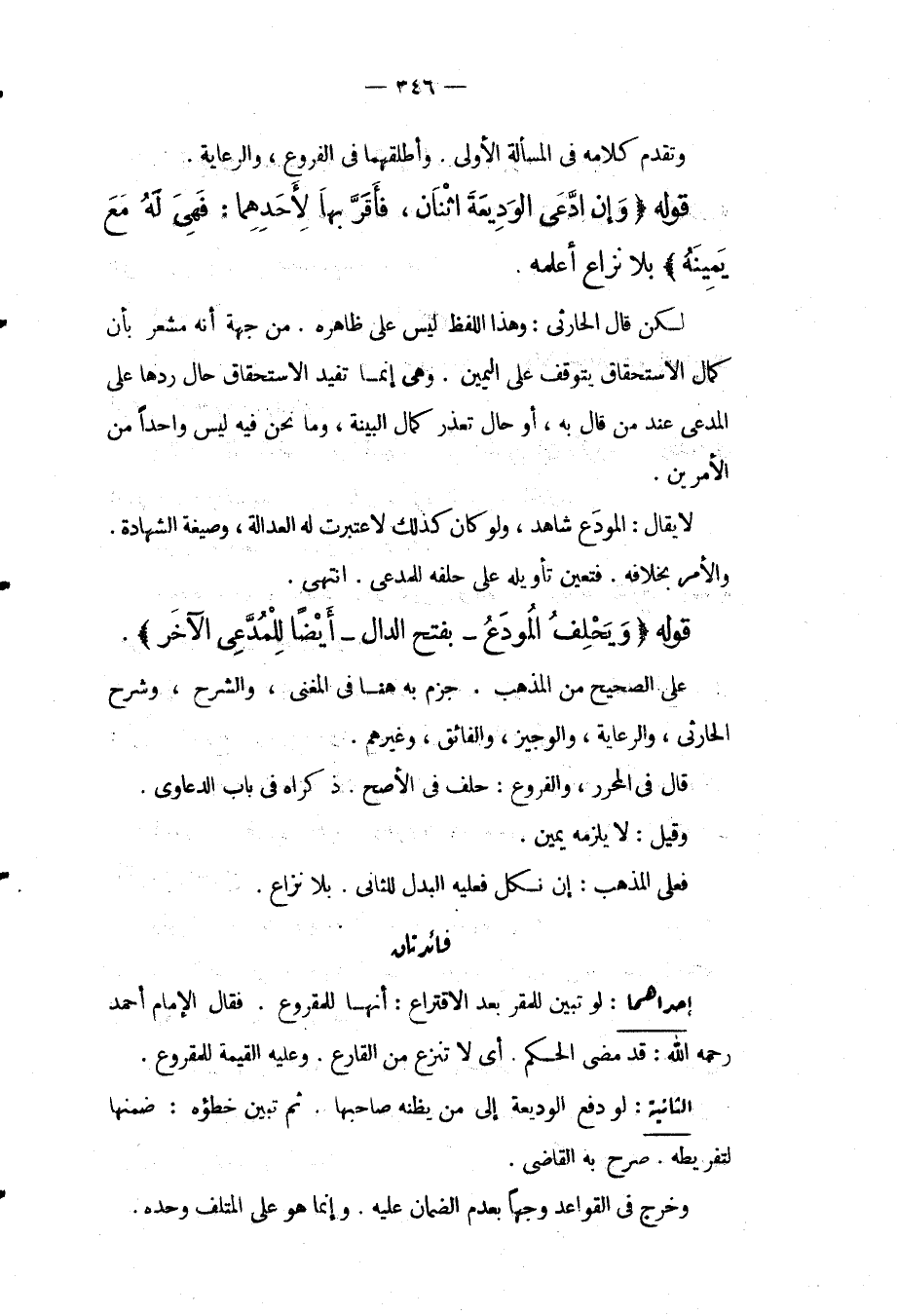 قَوْلُهُ (وَإِنْ ادَّعَى الْوَدِيعَةَ اثْنَانِ، فَأَقَرَّ بِهَا لِأَحَدِهِمَا: فَهِيَ لَهُ مَعَ يَمِينِهِ) بِلَا نِزَاعٍ أَعْلَمُهُ. لَكِنْ قَالَ الْحَارِثِيُّ: وَهَذَا اللَّفْظُ لَيْسَ عَلَى ظَاهِرِهِ أَنَّهُ مُشْعِرٌ بِأَنَّ كَمَالَ الِاسْتِحْقَاقِ يَتَوَقَّفُ عَلَى الْيَمِينِ. وَهِيَ إنَّمَا تُفِيدُ الِاسْتِحْقَاقَ حَالَ رَدِّهَا عَلَى الْمُدَّعِي عِنْدَ مَنْ قَالَ بِهِ، أَوْ حَالَ تَعَذُّرِ كَمَالِ الْبَيِّنَةِ. وَمَا نَحْنُ فِيهِ لَيْسَ وَاحِدًا مِنْ الْأَمْرَيْنِ. لَا يُقَالُ: الْمُودِعُ شَاهِدٌ، وَلَوْ كَانَ كَذَلِكَ لَاعْتُبِرَتْ لَهُ الْعَدَالَةُ، وَصِيغَةُ الشَّهَادَةِ. وَالْأَمْرُ بِخِلَافِهِ. فَتَعَيَّنَ تَأْوِيلُهُ عَلَى حَلِفِهِ لِلْمُدَّعِي. انْتَهَى.