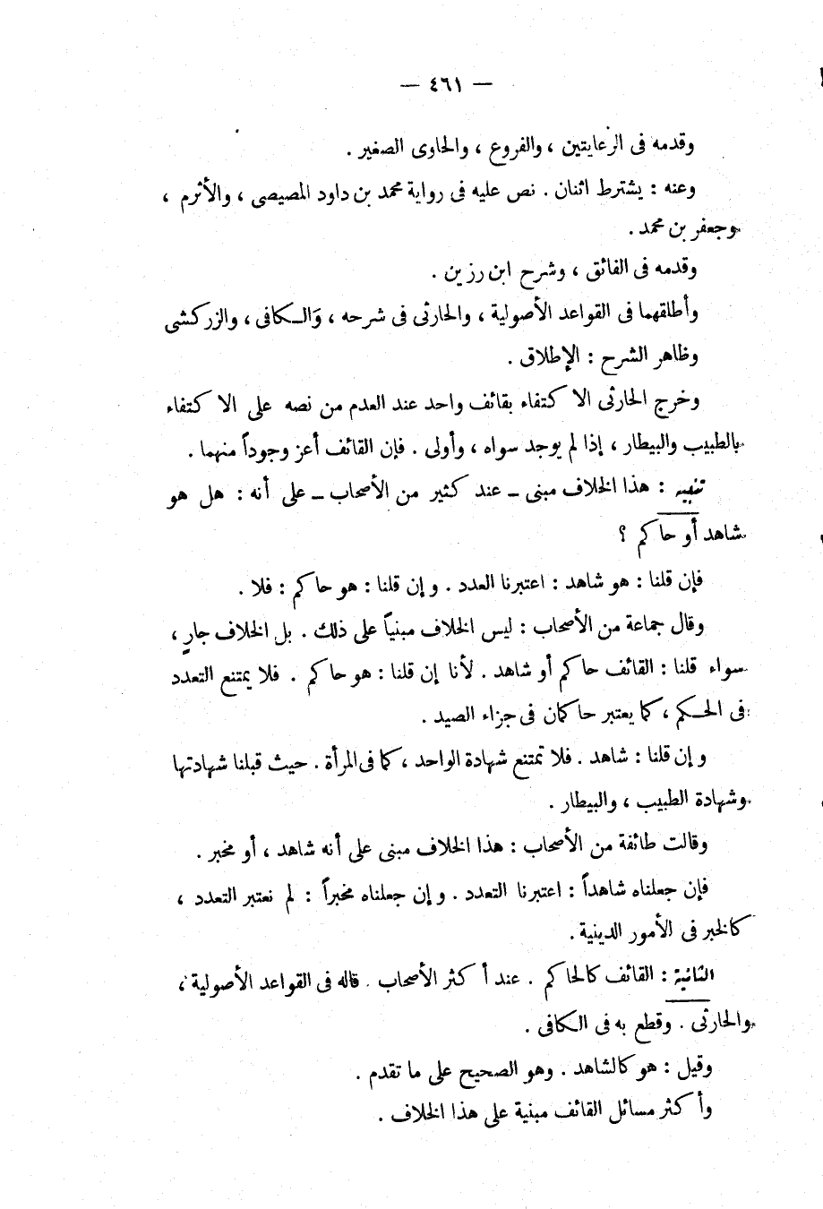 وَقَدَّمَهُ فِي الرِّعَايَتَيْنِ، وَالْفُرُوعِ، وَالْحَاوِي الصَّغِيرِ. وَعَنْهُ: يُشْتَرَطُ اثْنَانِ. نَصَّ عَلَيْهِ فِي رِوَايَةِ مُحَمَّدِ بْنِ دَاوُد الْمِصِّيصِيِّ، وَالْأَثْرَمِ، وَجَعْفَرِ بْنِ مُحَمَّدٍ. وَقَدَّمَهُ فِي الْفَائِقِ، وَشَرْحِ ابْنِ رَزِينٍ. وَأَطْلَقَهُمَا فِي الْقَوَاعِدِ الْأُصُولِيَّةِ، وَالْحَارِثِيُّ فِي شَرْحِهِ، وَالْكَافِي، وَالزَّرْكَشِيِّ وَظَاهِرُ الشَّرْحِ: الْإِطْلَاقُ. وَخَرَّجَ الْحَارِثِيُّ الِاكْتِفَاءَ بِقَائِفٍ وَاحِدٍ عِنْدَ الْعَدَمِ مِنْ نَصِّهِ عَلَى الِاكْتِفَاءِ بِالطَّبِيبِ وَالْبَيْطَارِ، إذَا لَمْ يُوجَدْ سِوَاهُ، وَأَوْلَى. فَإِنَّ الْقَائِفَ أَعَزُّ وُجُودًا مِنْهُمَا.