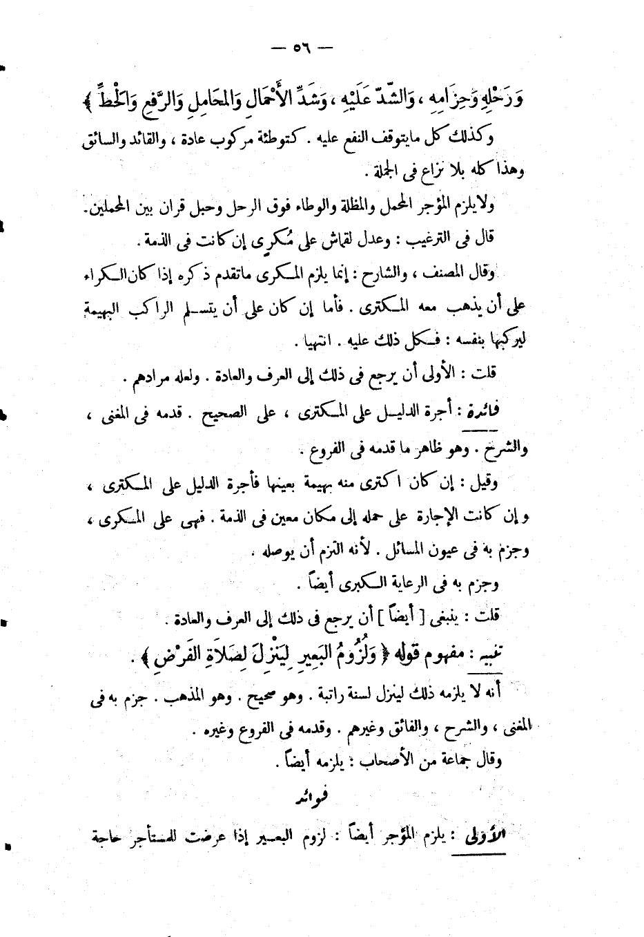 فَوَائِدُ: الْأُولَى: يَلْزَمُ الْمُؤَجِّرَ أَيْضًا. لُزُومُ الْبَعِيرِ إذَا عَرَضَتْ لِلْمُسْتَأْجِرِ حَاجَةٌ