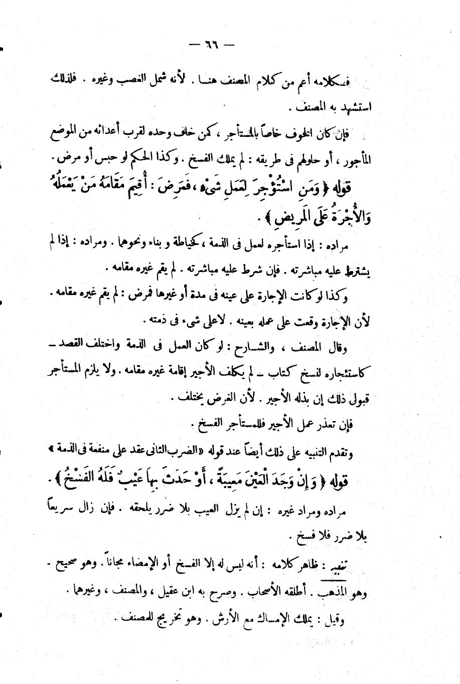 فَكَلَامُهُ أَعَمُّ مِنْ كَلَامِ الْمُصَنِّفِ هُنَا. لِأَنَّهُ شَمَلَ الْغَصْبَ وَغَيْرَهُ. فَلِذَلِكَ اسْتَشْهَدَ بِهِ الْمُصَنِّفُ. فَإِنْ كَانَ الْخَوْفُ خَاصًّا بِالْمُسْتَأْجِرِ، كَمَنْ خَافَ وَحْدَهُ لِقُرْبِ أَعْدَائِهِ مِنْ الْمَوْضِعِ الْمَأْجُورِ، أَوْ حُلُولِهِمْ فِي طَرِيقِهِ: لَمْ يَمْلِكْ الْفَسْخَ. وَكَذَا الْحُكْمُ لَوْ حُبِسَ أَوْ مَرِضَ.