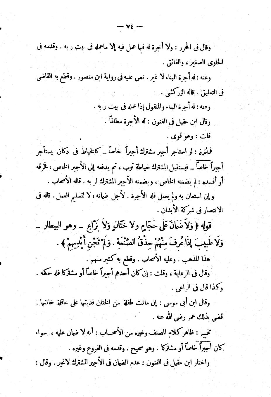 تَنْبِيهٌ: ظَاهِرُ كَلَامِ الْمُصَنِّفِ وَغَيْرِهِ مِنْ الْأَصْحَابِ: أَنَّهُ لَا ضَمَانَ عَلَيْهِ، سَوَاءٌ كَانَ أَجِيرًا خَاصًّا أَوْ مُشْتَرَكًا. وَهُوَ صَحِيحٌ. وَقَدَّمَهُ فِي الْفُرُوعِ وَغَيْرِهِ. وَاخْتَارَ ابْنُ عَقِيلٍ فِي الْفُنُونِ: عَدَمَ الضَّمَانِ فِي الْأَجِيرِ الْمُشْتَرَكِ لَا غَيْرُ. وَقَالَ: