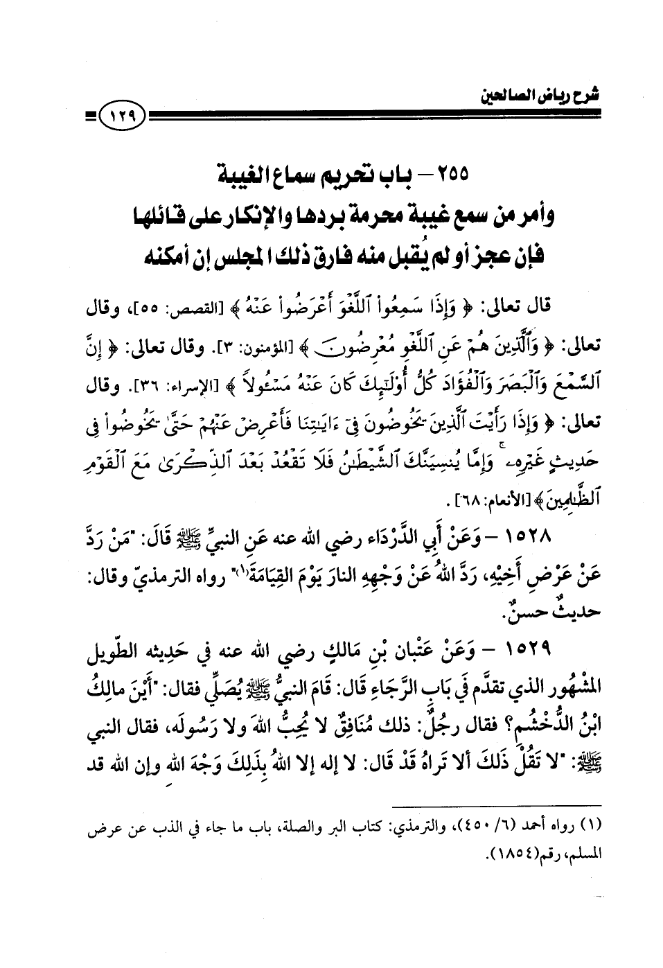 باب تحريم سماع الغيبة وأمر من سمع غيبة محرمة بردها، والإنكار على قائلها، فإن عجز أو لم يقبل منه، فارق المجلس إن أمكنه