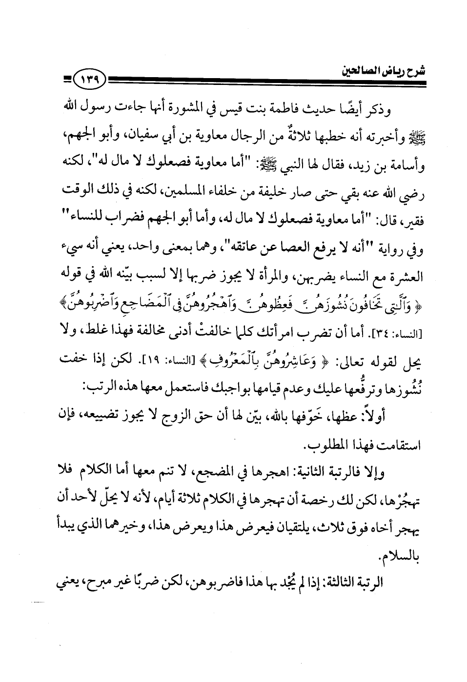 وذكر أيضًا حديث فاطمة بنت قيس في المشورة أنها جاءت إلى رسول الله صلى الله عليه وسلم وأخبرته أنه خطبها ثلاثة من الرجال معاوية بن أبي سفيان، وأبي الجهم، وأسامة بن زيد، فقال لها النبي صلى الله عليه وسلم: أما معاوية فصعلوك لا مال له؛ لكنه رضي الله عنه بقي حتى صار خليفة للمسلمين؛ لكنه في ذلك الوقت فقير.