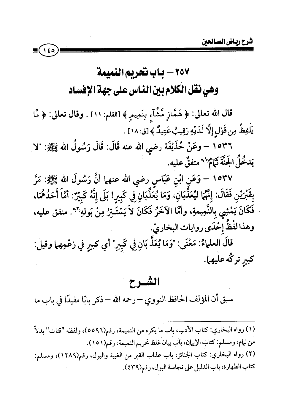 باب تحريم النميمة وهي نقل الكلام بين الناس على جهة الإفساد
