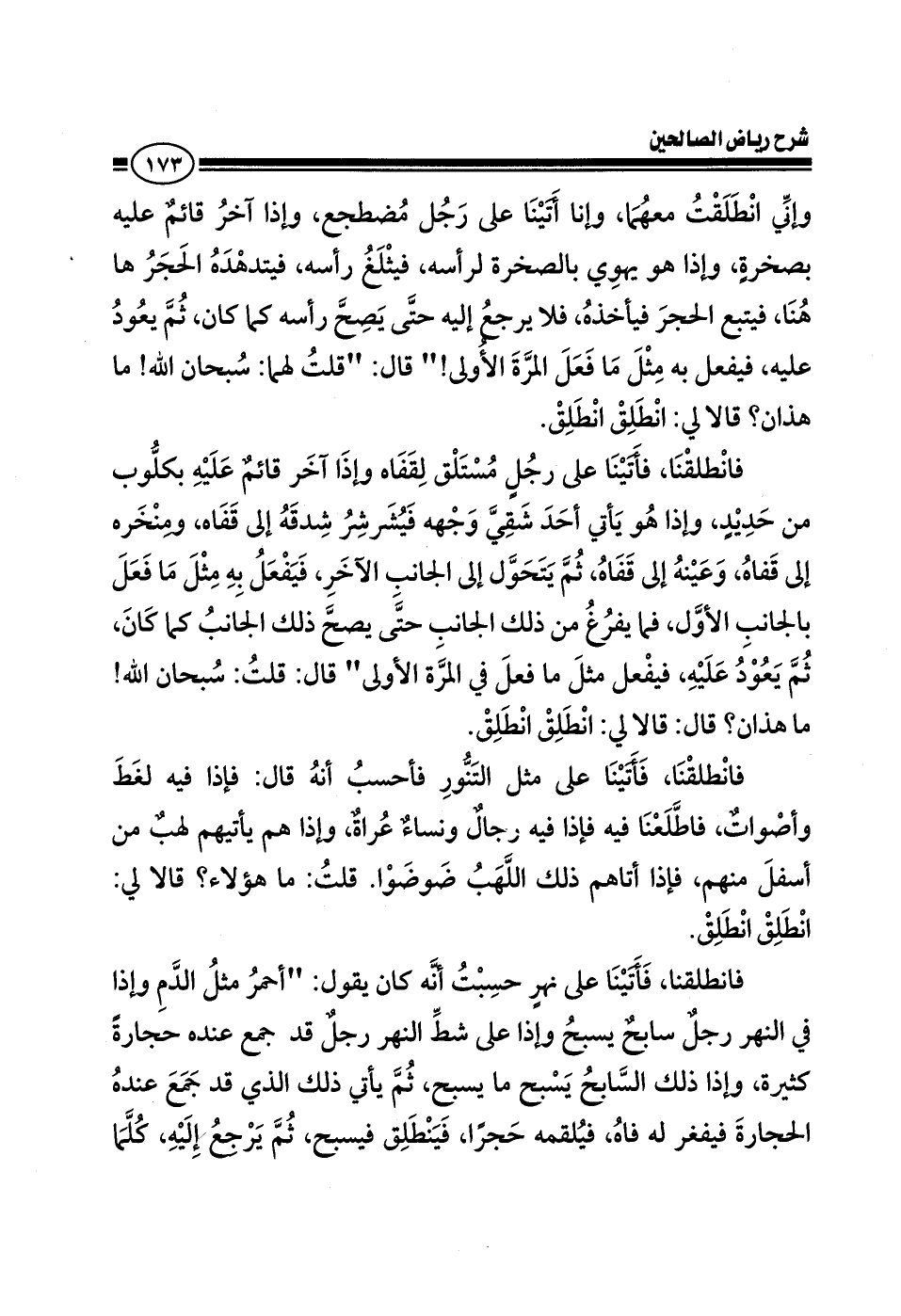 قال: قلت لهما سبحان الله، ما هذان؟ قالا لي: انطلق، فانطلقنا.