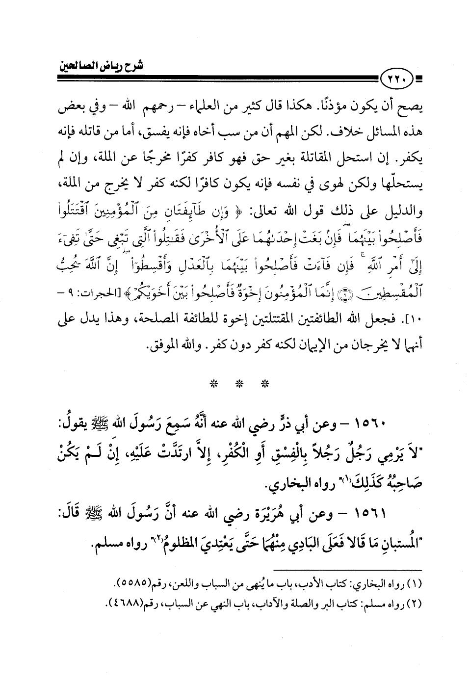 1561 - وعن أبي هريرة رضي الله عنه أن رسول الله صلى الله عليه وسلم قال: المتسابان ما قالا فعلى البادي منهما حتى يعتدي المظلوم رواه مسلم