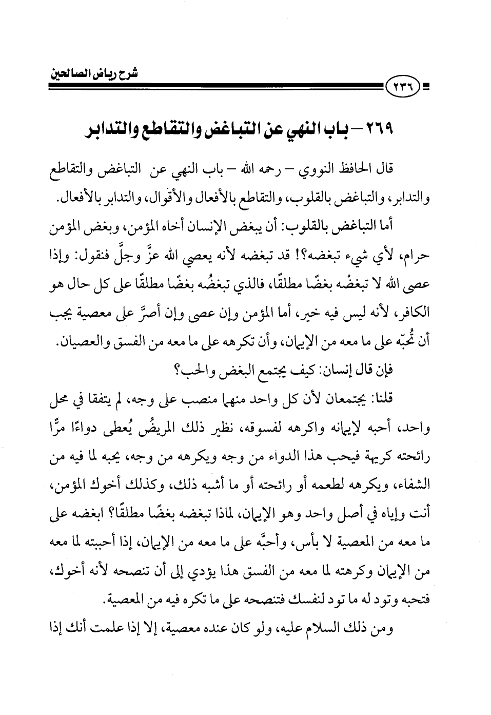 EXقال النووي رحمه الله تعالى في كتابه (رياض الصالحين) : باب النهي عن التباغض والتقاطع والتدابر.