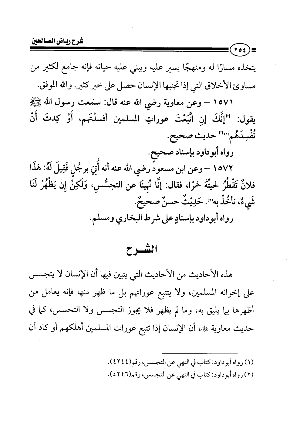 1571 - وعن معاوية رضي الله عنه قال: سمعت رسول الله صلى الله عليه وسلم يقول: إنك إن اتبعت عورات المسلمين أفسدتهم، أو كدت أن تفسدهم حديث صحيح.