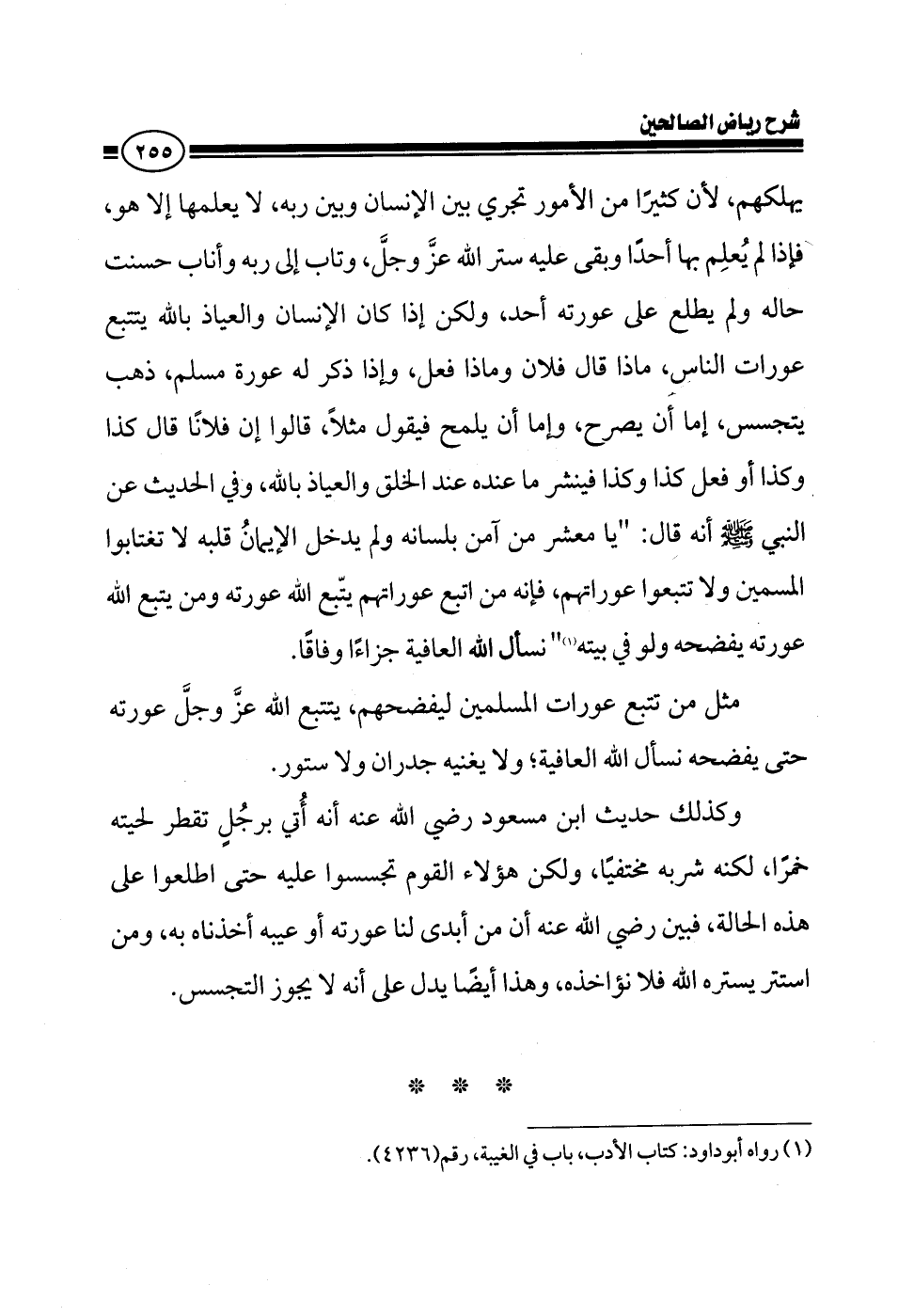 يهلكهم، لأن كثيرا من الأمور تجري بين الإنسان وبين ربه، لا يعلمها إلا هو، فإذا لم يعلم بها أحد وبقى عليه ستر الله عز وجل، وتاب إلى ربه وأناب حسنت حاله ولم يطلع على عورته أحد، ولكن إذا كان الإنسان والعياذ بالله يتتبع عورات الناس، ماذا قال فلان وماذا فعل، وإذا ذكر له عورة مسلم، ذهب يتجسس، إما أن يصرح، وإما أن يلمح فيقول مثلا، قالوا إن فلانا قال كذا وكذا أو فعل كذا وكذا فينشر ما عنده عند الخلق والعياذ بالله، وفي الحديث عن النبي صلى الله عليه وسلم أنه قال: يا معشر من آمن بلسانه ولم يدخل الإيمان قلبه لا تؤذوا المسلمين ولا تتبعوا عوراتهم، فإن من تتبع عورة أخيه تتبع الله عورته ومن تتبع الله عورته فضحه ولو في بيت أمه نسأل الله العافية جزاء وفاقا، مثل من تتبع عورات المسلمين ليفضحهم، يتتبع الله عز وجل عورته حتى يفضحه نسأل الله العافية ولا يغنيه جدران ولا ستور، وكذلك حديث ابن مسعود رضي الله عنه أنه أتى برجل تقطر لحيته خمرا، لكنه شربه مختفيا، ولكن هؤلاء القوم تجسسوا عليه حتى أخرجوا على هذه الحالة، فبين رضي الله عنه أن من أبدى لنا عورته أو عيبه أخذناه به، ومن استتر بستر الله فلا نؤاخذه، وهذا أيضا يدل على أنه لا يجوز التجسس