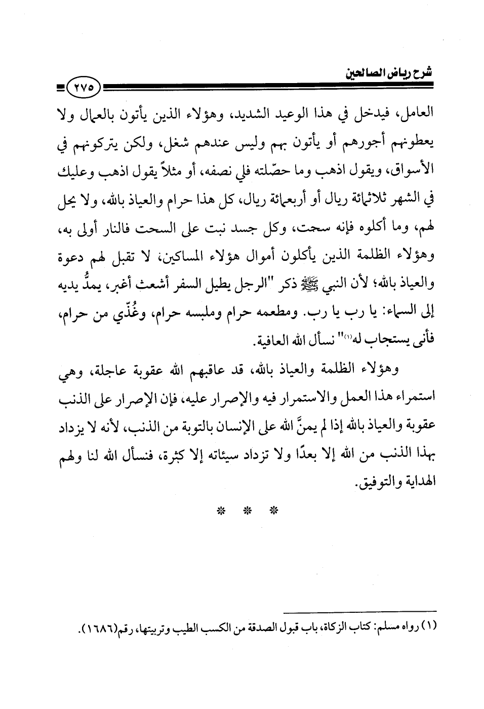 ومطعمه حرام وملبسه حرام، وغذي من حرام، فأنى يستجاب له وما يأكل هؤلاء من أجور هؤلاء العمال أو يظلمونهم به، فإنهم يأكلونه سحتا نسأل الله العافية.
