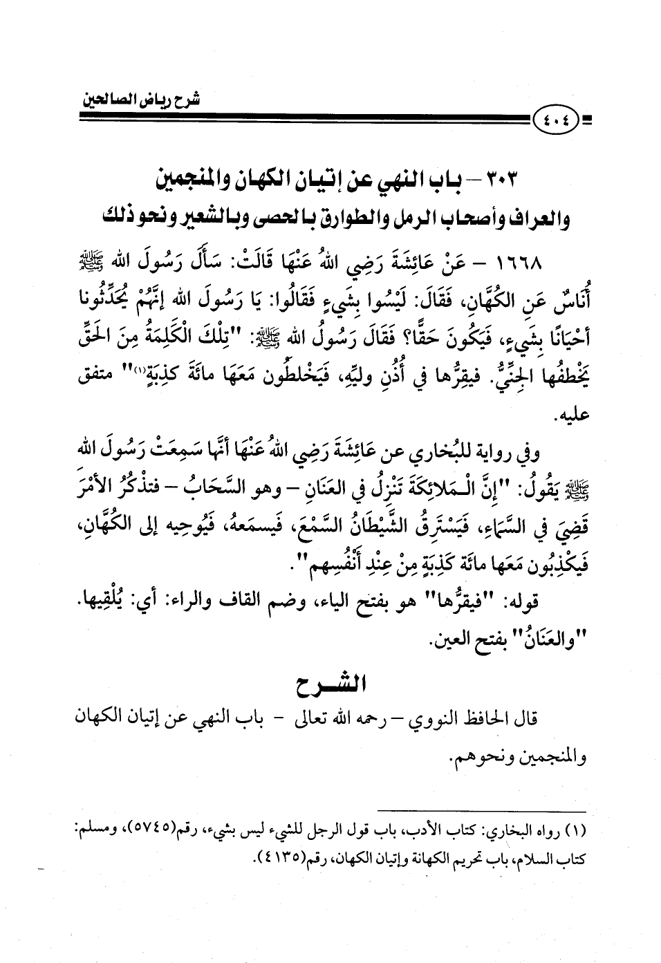 EXقال المؤلف رحمه الله تعالى في كتابه رياض الصالحين باب تحريم إتيان الكهان والمنجمين ونحوهم