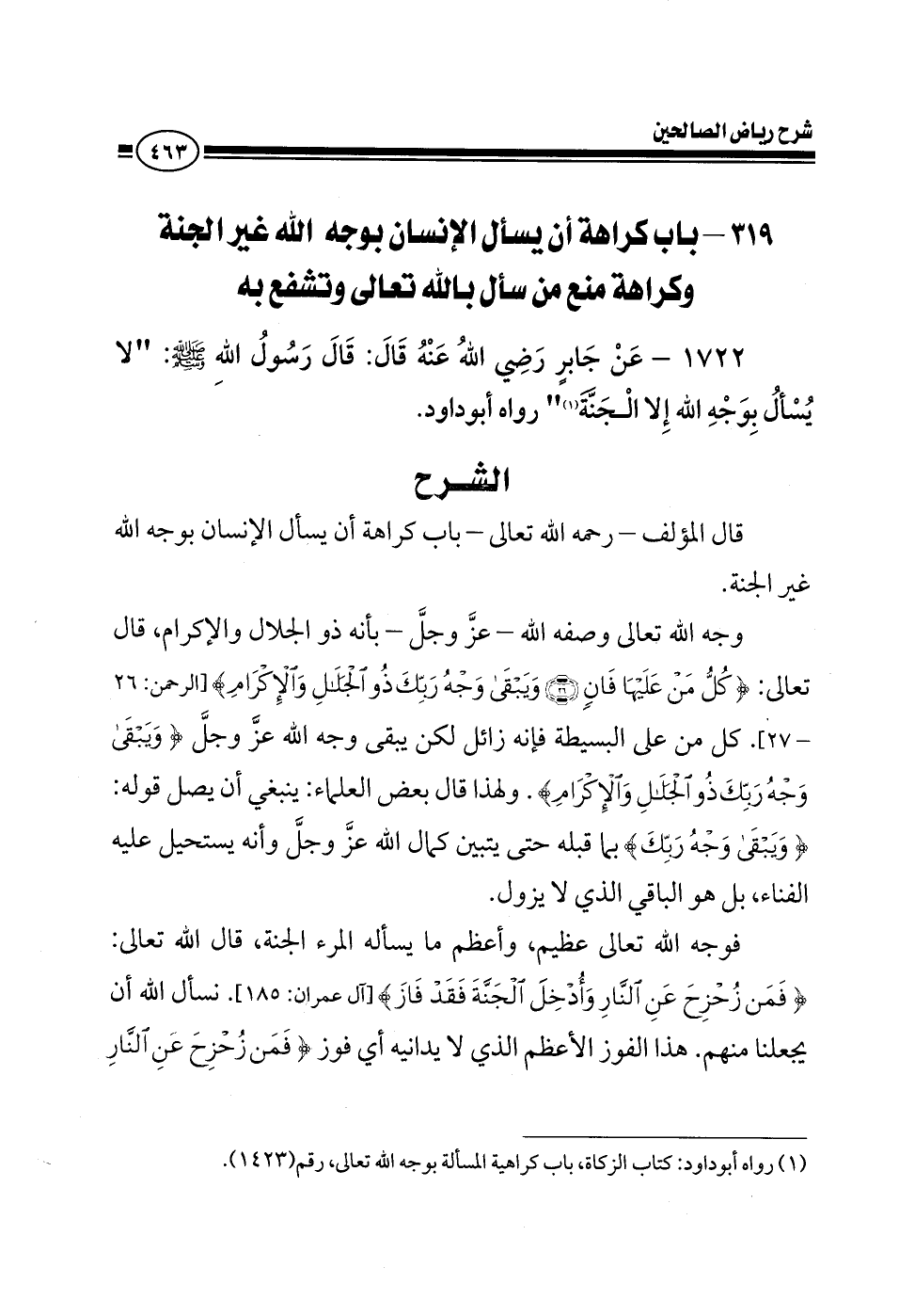 1722 - عن جابر رضي الله عنه قال: قال رسول الله صلى الله عليه وسلم لا يسأل بوجه الله إلا الجنة رواه أبو داود