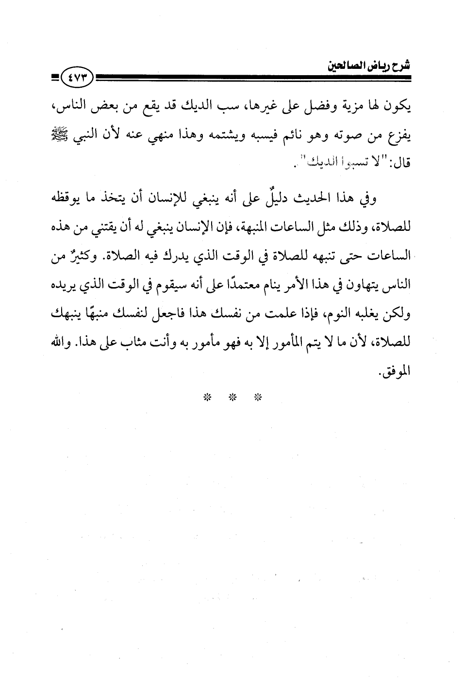 يكون لها مزية وفضل على غيرها سب الديك قد يقع من بعض الناس بفزع من صوته وهو نائم فيسبه ويشتمه وهذا منهي عنه لأن النبي صلى الله عليه وسلم قال لا تسبوا الديك وفي هذا الحديث دليل على أنه ينبغي للإنسان أن يتخذ ما يوقظه للصلاة وذلك مثل الساعات المنبهة فإن الإنسان ينبغي له أن يقتني من هذه الساعات حتى تنبهه للصلاة في الوقت الذي يدرك فيه الصلاة وكثير من الناس يتهاون في هذا الأمر ينام معتمدا على أنه سيقوم في الوقت الذي يريده ولكن يغلبه النوم فإذا علمت من نفسك هذا فاجعل لنفسك منبها ينبهك للصلاة لأن ما لا يتم المأمور إلا به فهو مأمور به وأنت مثاب على هذا