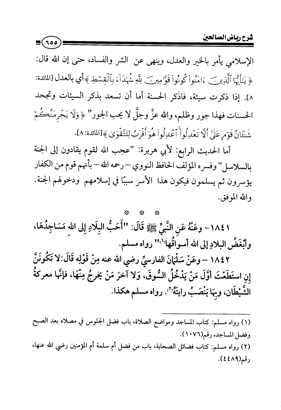 1841 - وعنه عن النبي صلى الله عليه وسلم قال أحب البلاد إلى الله مساجدها وأبغض البلاد إلى الله أسواقها رواه مسلم