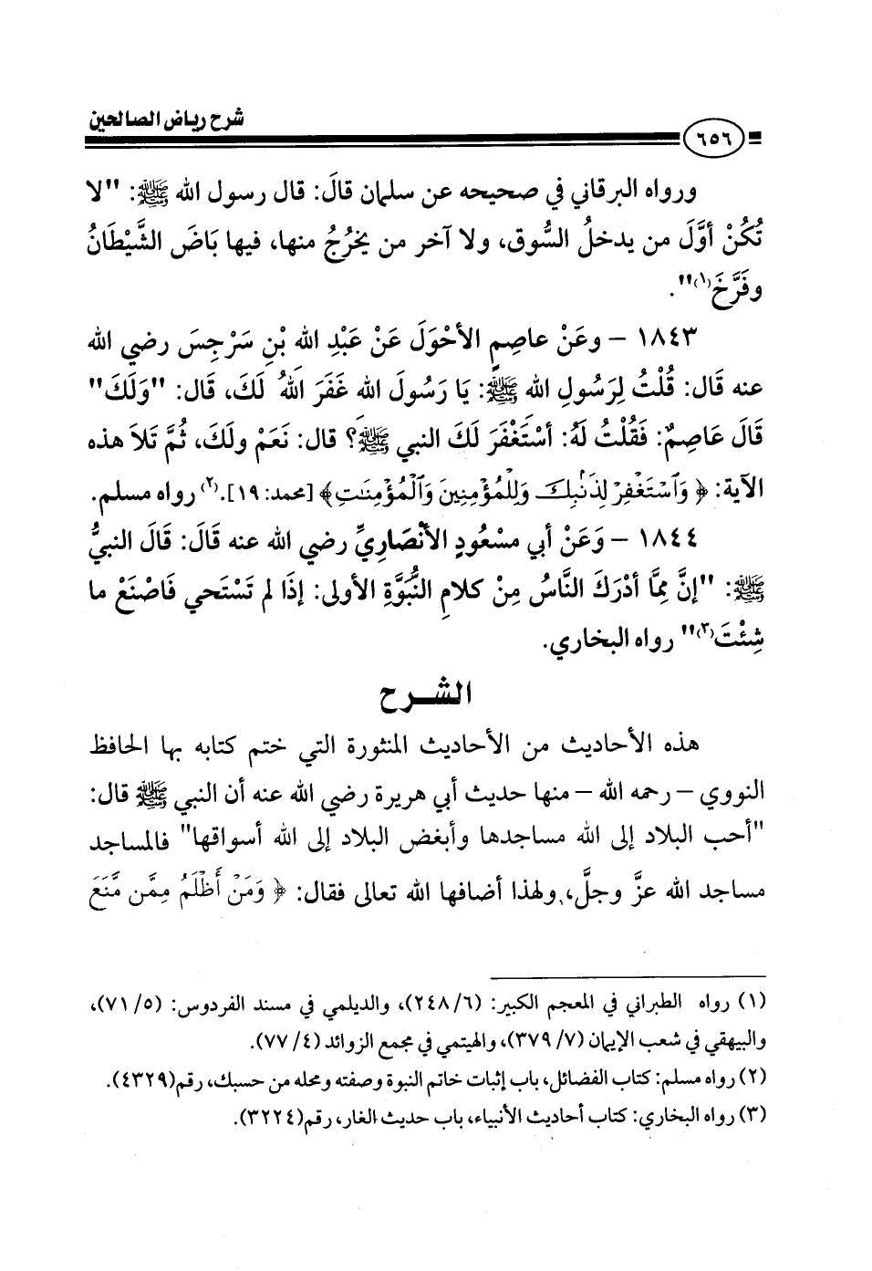 EXهذه الأحاديث من الأحاديث المنثورة التي ذكرها النووي رحمه الله في كتابه رياض الصالحين منها حديث أبي هريرة أن النبي صلى الله عليه وسلم قال أحب البقاع إلى الله مساجدها وأبغض البقاع إلى الله أسواقها أو قال البلاد فالمساجد مساجد الله عز وجل ولهذا أضافها الله إلى نفسه فقال ومن أظلم ممن منع
