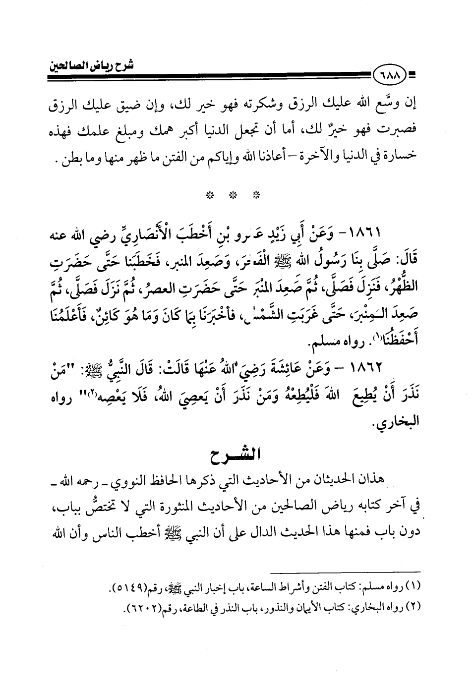 EXهذه الأحاديث من الأحاديث التي ذكرها المؤلف في كتابه (رياض الصالحين) من الأحاديث المنثورة التي لا تختص بباب دون باب فمنها هذا الحديث الدال على أن النبي صلى الله عليه وسلم أخطب الناس وأن الله