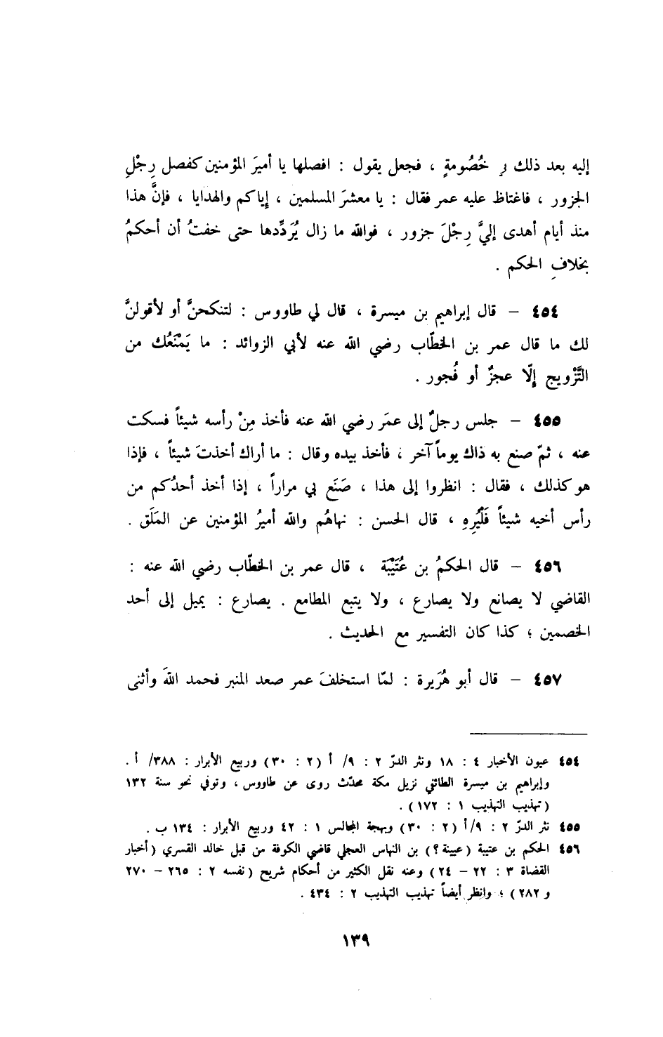 إليه بعد ذلك في خصومة، فجعل يقول: افصلها يا أمير المؤمنين كفصل رجل الجزور، فاغتاظ عليه عمر فقال: يا معشر المسلمين، إياكم والهدايا، فإن هذا منذ أيام أهدى إلي رجل جزور، فوالله ما زال يرددها حتى خفت أن أحكم بخلاف الحكم.