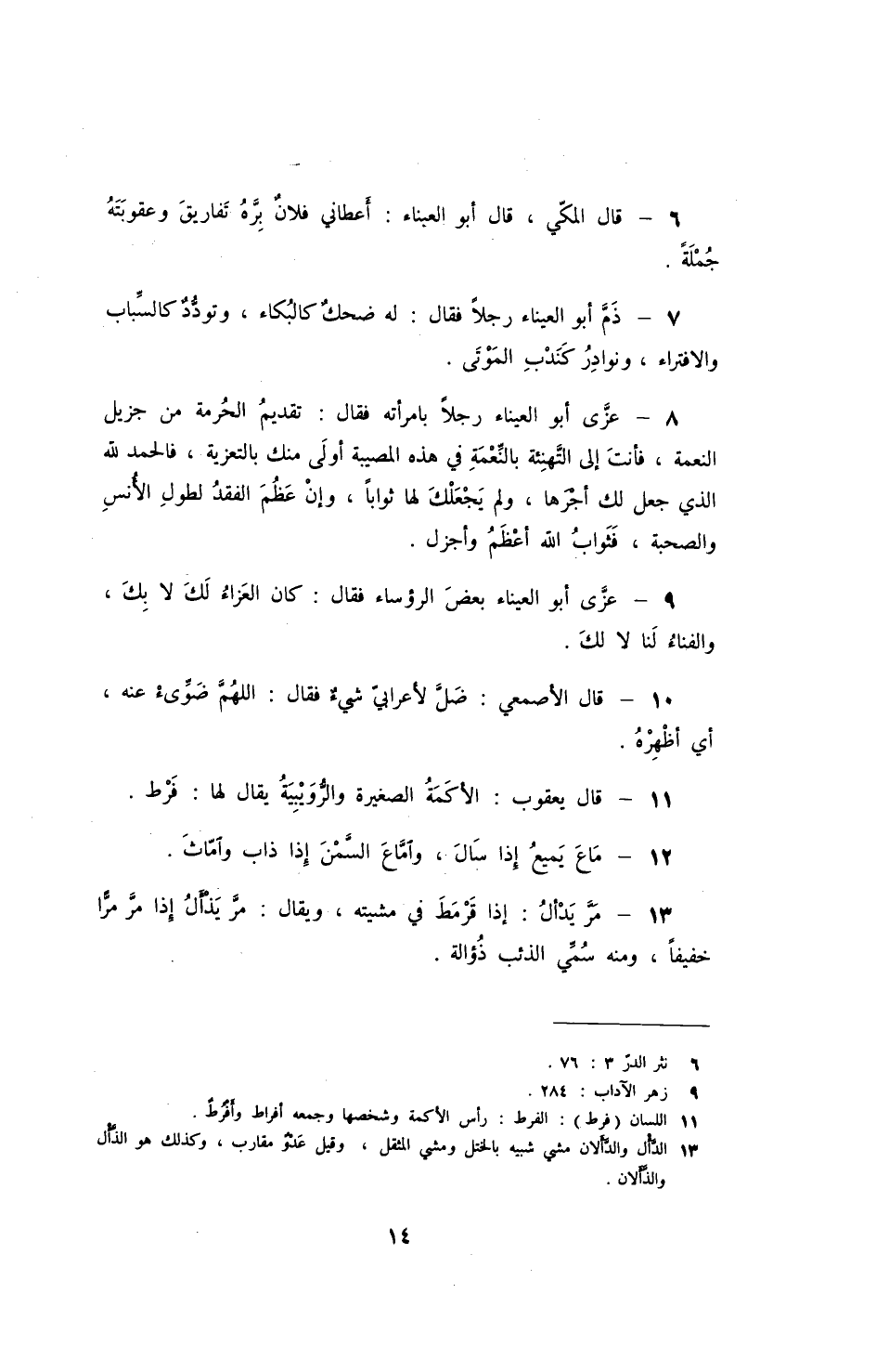 عزى أبو العيناء بعض الرؤساء فقال: كان العزاء لك لا بك، والفناء لنا لا لك.