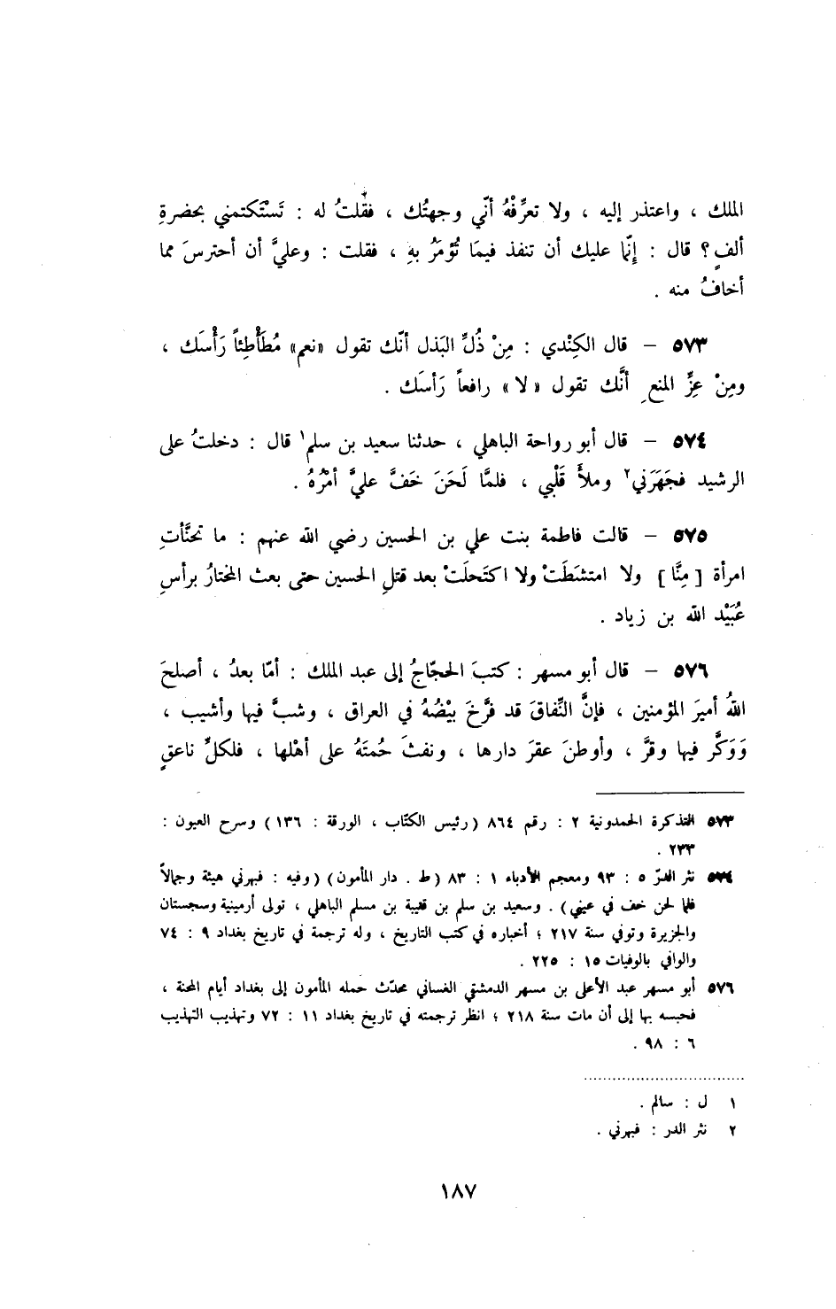 الملك، واعتذر إليه، ولا تعرفه أني وجهتك، فقلت له: تستكتمني بحضرة ألف؟ قال: إنما عليك أن تنفذ فيما تؤمر به، فقلت: وعلي أن أحترس مما أخاف منه.