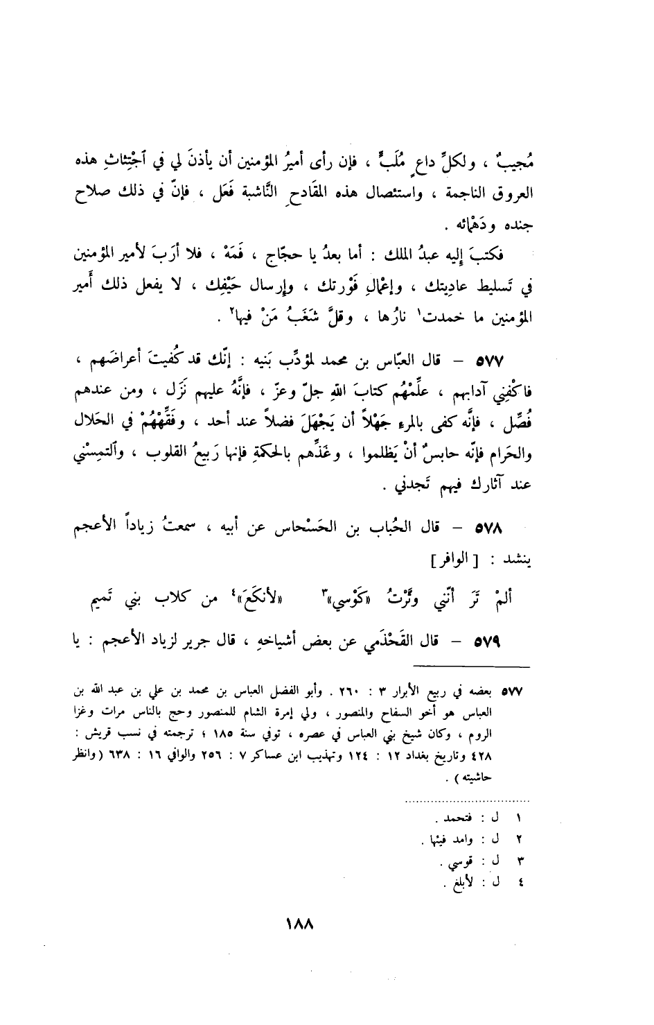 مجيب، ولكل داع ملب، فإن رأى أمير المؤمنين أن يأذن لي في اجتثاث هذه العروق الناجمة، استئصال هذه المقادح الناشبة فعل، فإن في ذلك صلاح جنده ودهمائه.