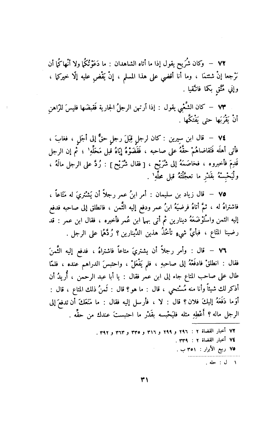 وكان شريح يقول إذا ما أتاه الشاهدان: ما دعوتكما ولا أنها كما أن ترجعا إن شئتما، وما أنا أقضي على هذا المسلم، إن يقض عليه إلا خيركما، وإني متق بكما فاتقيا.
