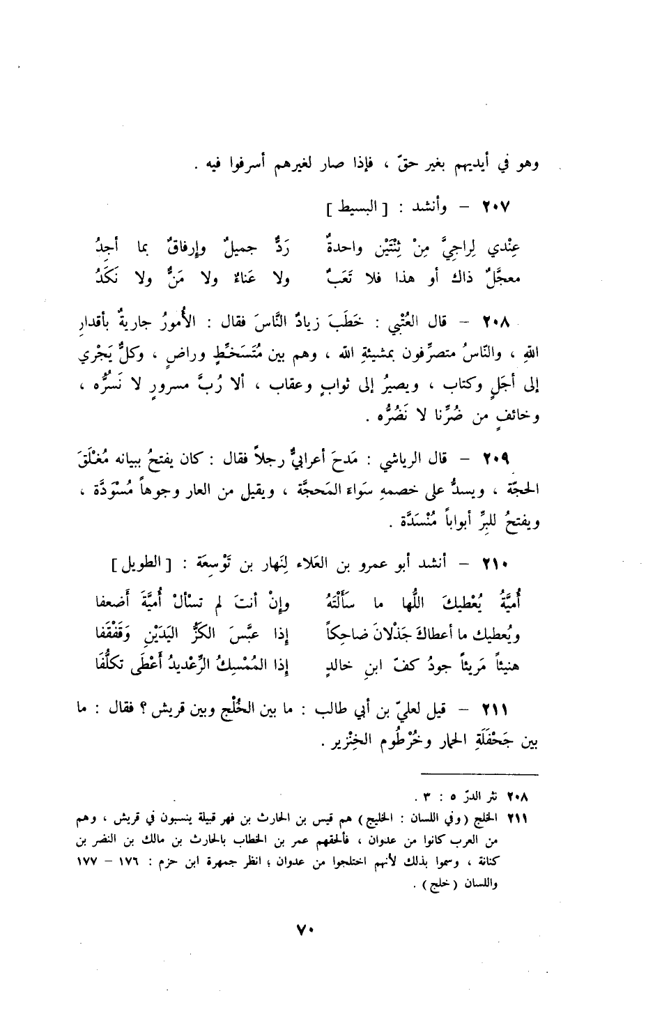 قال الرياشي: مدح أعرابي رجلاً فقال: كان يفتح ببياته مغلق الحجة، ويسد على خصمه سواء المحجة، ويقبل من العار وجوهاً مسودة، ويفتح للبر أبواباً منسدة.