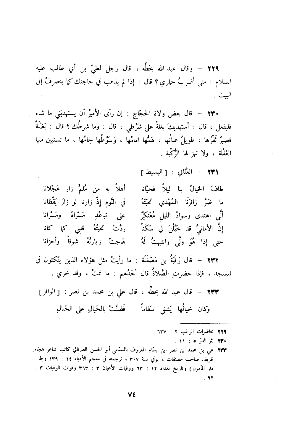 وقال عبد الله بخطه، قال رجل لعلي بن أبي طالب عليه السلام: متى أضرب حماري؟ قال: إذا لم يذهب في حاجتك كما ينصرف إلى البيت.