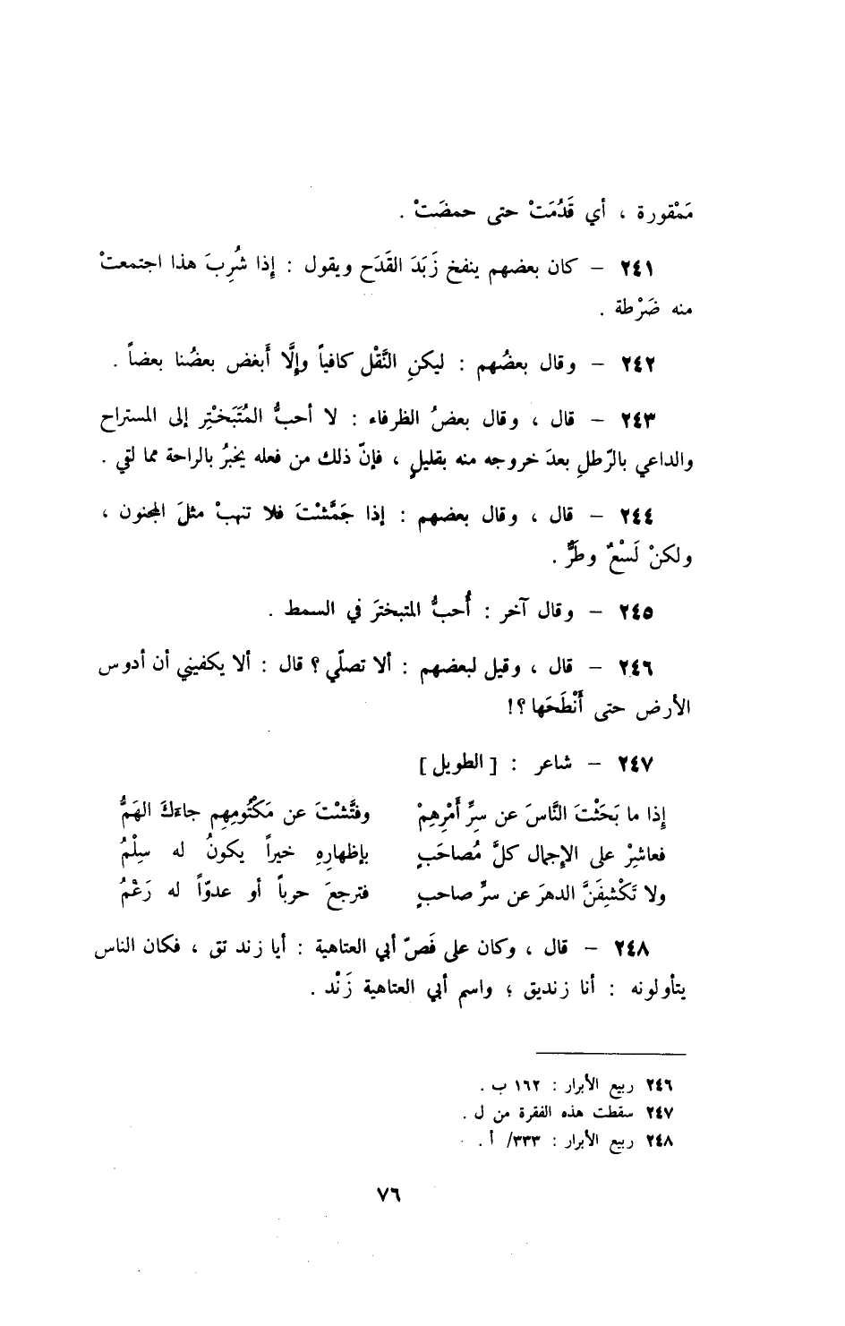 قال، وقيل لبعضهم: ألا تصلي؟ قال: ألا يكفيني أن أدوس الأرض حتى أنطحها؟! شاعر: الطويل