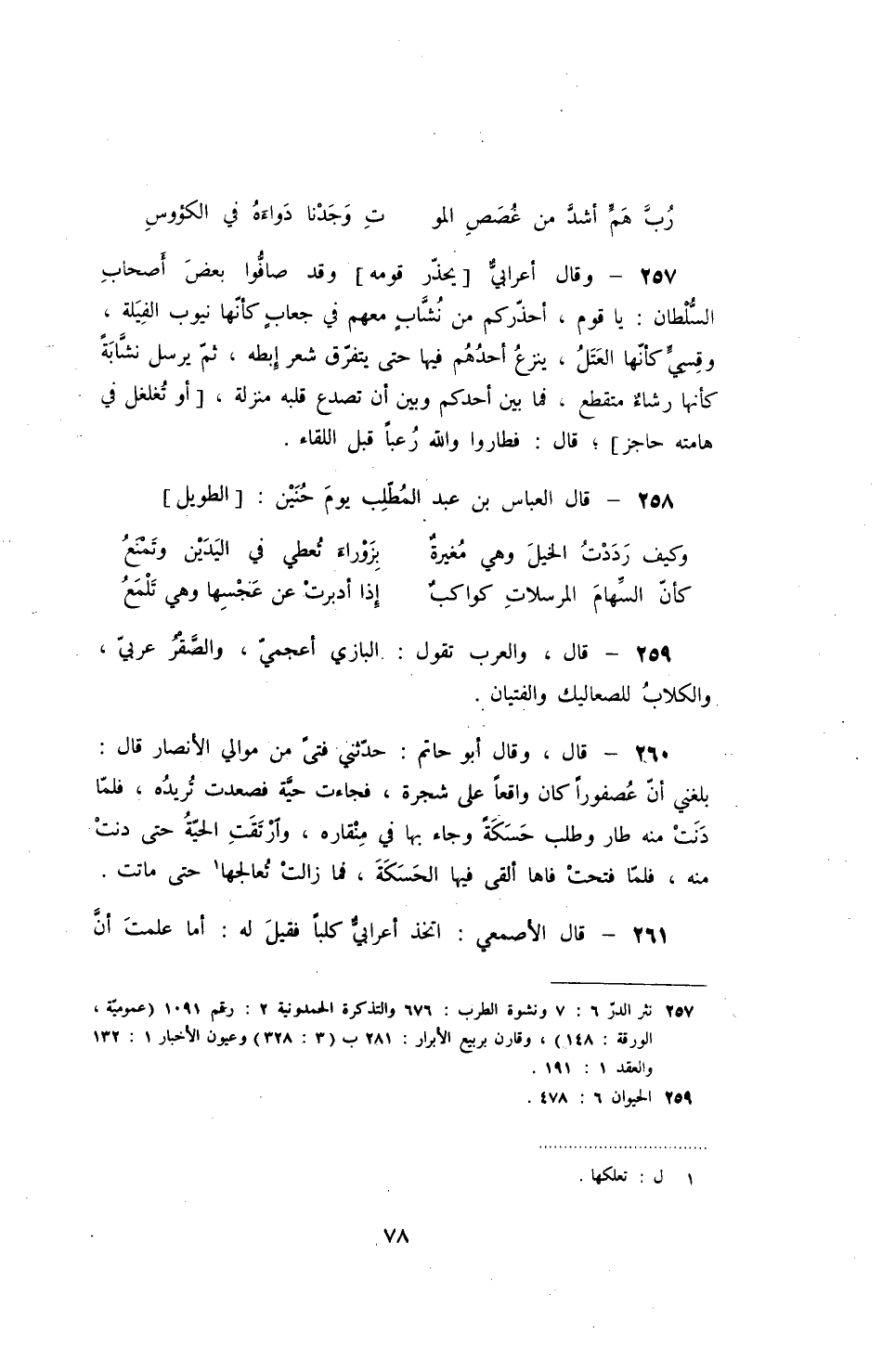 قال، والعرب تقولك البازي أعجمي، والصقر عربي، والكلاب للصعاليك والفتيان.