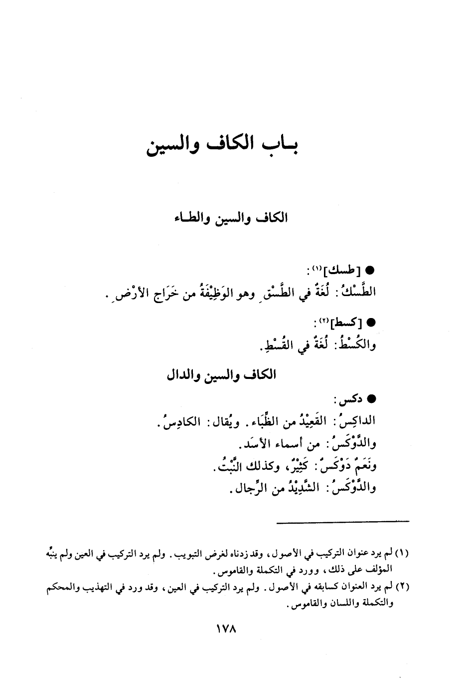 طسك الطَّسْكُ : لُغَةٌ في الطسْقِ وهو الوَظِيْفَة من خَرَاج الأرْض . كسط والكُسْطُ : لُغَةٌ في القُسْطِ .