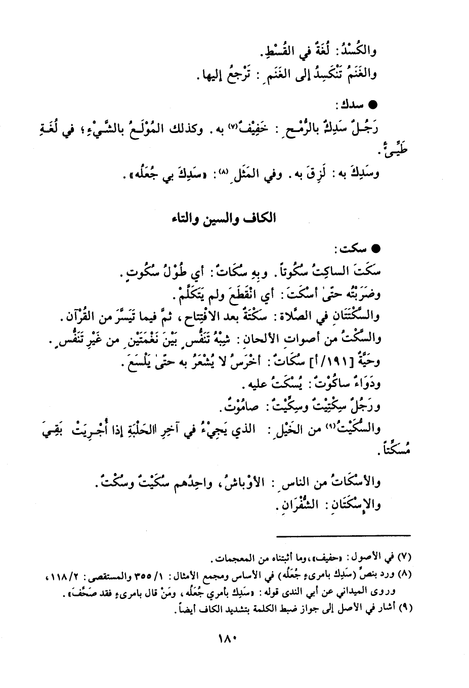 والكُسْدُ : لُغَةٌ في القُسْطِ . والغَنَمُ تَنْكَسِدُ إلى الغَنَم : تَرْجعُ إليها . سدك رَجُل سَدِكٌ بالرُّمْح : خَفِيْفٌ به . وكذلك المُوْلَعُ بالشَّيْءِ في لُغَةِ طَيىءٍ . وسَدِكَ به : لَزِقَ به . وفي المَثَل : ' سَدِكَ بي جُعَلُه ' .