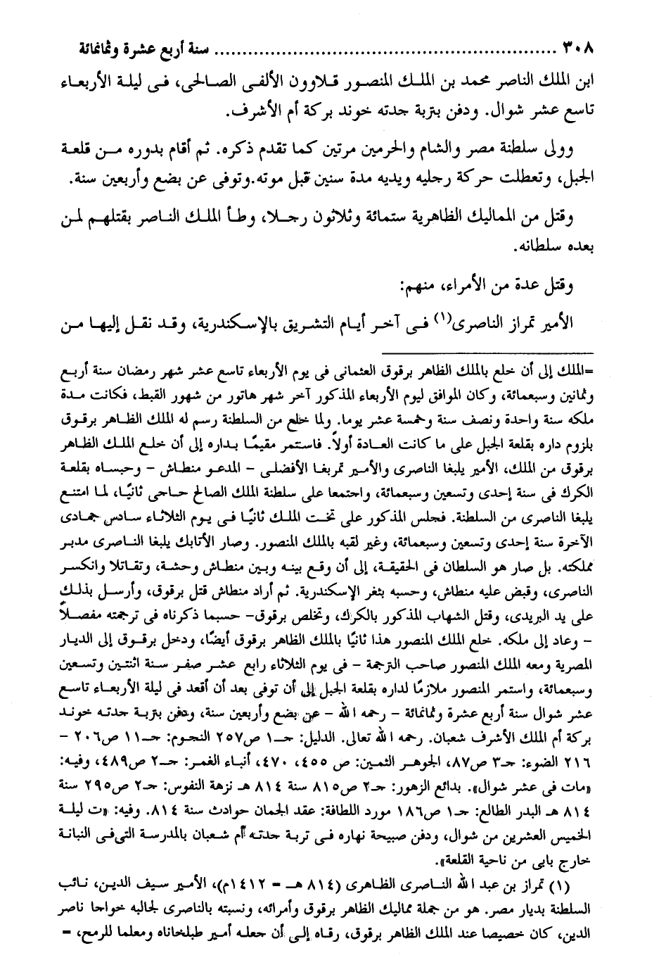 ابْن الْملك النَّاصِر مُحَمَّد بن الْملك الْمَنْصُور قلاوون الألفي الصَّالِحِي فِي لَيْلَة الْأَرْبَعَاء تَاسِع عشر شَوَّال. وَولي سلطنة مصر وَالشَّام والحرمين مرَّتَيْنِ كَمَا تقدم ذكره. ثمَّ أَقَامَ بدوره من قلعة الْجَبَل وتعطلت حَرَكَة رجلَيْهِ وَيَديه مُدَّة سِنِين قبل مَوته. وَتُوفِّي عَن بضع وَأَرْبَعين سنة. وَقتل من المماليك الظَّاهِرِيَّة سِتّمائَة وَثَلَاثُونَ رجلا وطأ الْملك النَّاصِر بِقَتْلِهِم لمن بعده سُلْطَانه. وَقتل عدَّة من الْأُمَرَاء مِنْهُم: الْأَمِير تمراز الناصري فِي آخر أَيَّام التَّشْرِيق بالإسكندرية وَقد نقل إِلَيْهَا من