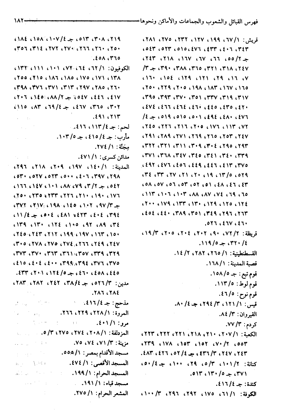 قريش: ١/ ٦٧، ١٩٩، ١٢٧، ٢٣٢، ٢٧٥، ٢٨١، ٣٤٣، ٤٠٦، ٤٣٣، ٤٧٦، ٥١٥، ٥٢٣، ٥٤٣، ج ٢/ ٥٥، ٦٦، ٦٧، ١٦٧، ٢١٨، ٢٤٣، ٢٤٧، ٣١٨، ٣٢١، ٣٦٥، ٣٨٨، ٣٩٠، ج ٣/ ٧، ١٦، ٢٩، ١٢١، ١٢٩، ١٥٤، ١٦٠، ١٦٥، ١٦٧، ١٨٣، ١٩٨، ٢٠٥، ٢٢٩، ٢٥٠، ٣١٧، ٣١٩، ٣٣٧، ٣٥١، ٣٧٠، ٣٩٣، ٣٩٥، ٤٢٠، ٤٣٥، ٤٤٥، ٤٦٠، ٤٦٤، ٤٦٦، ٤٧٤، ٤٧٦، ٤٨٠، ٤٩٤، ٥٠١، ٥١٥، ٥١٩، ج ٤/ ٧٢، ١١٣، ١٧٦، ٢٠٥، ٢١٦، ٢٢٦، ٢٤٥، ٢٤٧، ٢٥٣، ٢٦٥، ٢٦٩، ٢٧١، ٢٨٩، ٢٩١، ٢٩٣، ٢٩٥، ٣٠٤، ٣٠٩، ٣١١، ٣٢١، ٣٢٢، ٣٣٩، ٣٤٠، ٣٤١، ٣٤٥، ٣٤٧، ٣٦٨، ٣٧١، ٣٧٥، ٤١٣، ٤٤٦، ٤٤٩، ٤٥٦، ٤٧٦، ٤٩٢، ٥٢٩، ٥/ ١٣، ١٩، ٢٠، ٢١، ٢٧، ٣٣، ٣٤، ٤٣، ٤٦، ٤٨، ٥١، ٥٢، ٥٣، ٥٦، ٥٧، ٥٨، ٦٥، ٦٩، ٧٤، ٨٧، ٨٨، ١٠٣، ١٠٦، ١١٣، ١٢٤، ١٢٥، ١٢٩، ١٣٠، ١٣٣، ١٧٩، ٢٠٠، ٢٦٣، ٢٩٦، ٣٤٩، ٣٥١، ٣٨٩، ٤٤٠، ٤٥٤، ٤٦٠، ٤٦٧، ٥٢٦.