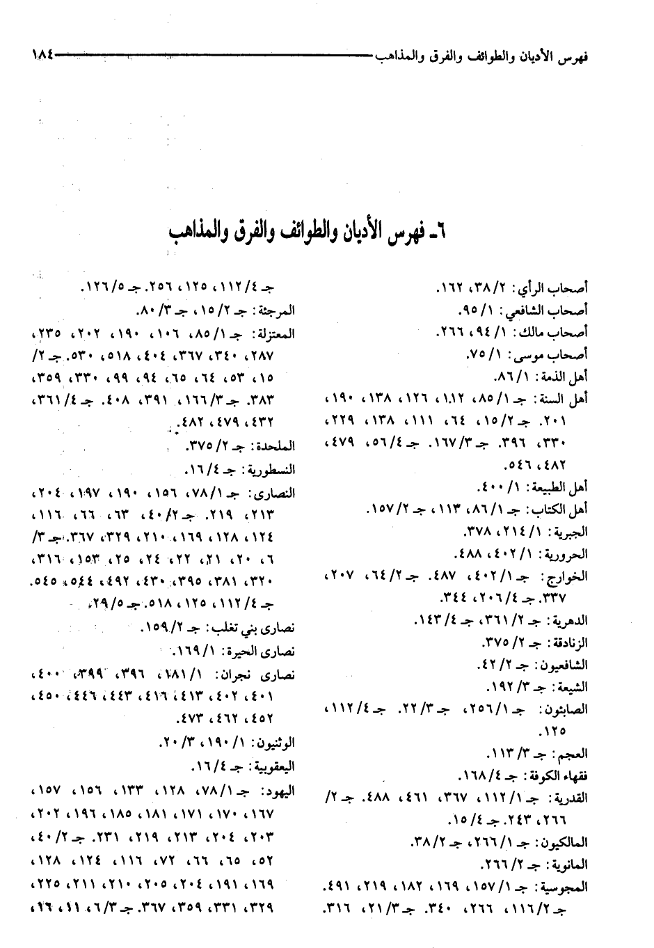 ٦- فهرس الأديان والطوائف والفرق والمذاهب