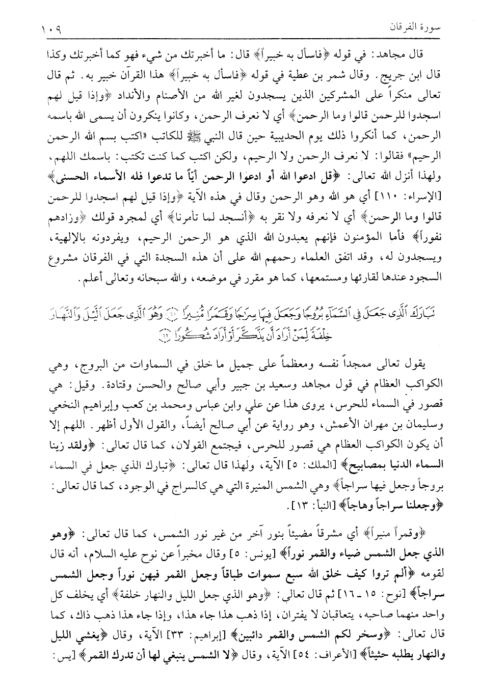 تَبارَكَ الَّذِي جَعَلَ فِي السَّماءِ بُرُوجاً وَجَعَلَ فِيها سِراجاً وَقَمَراً مُنِيراً (61) وَهُوَ الَّذِي جَعَلَ اللَّيْلَ وَالنَّهارَ خِلْفَةً لِمَنْ أَرادَ أَنْ يَذَّكَّرَ أَوْ أَرادَ شُكُوراً (62)