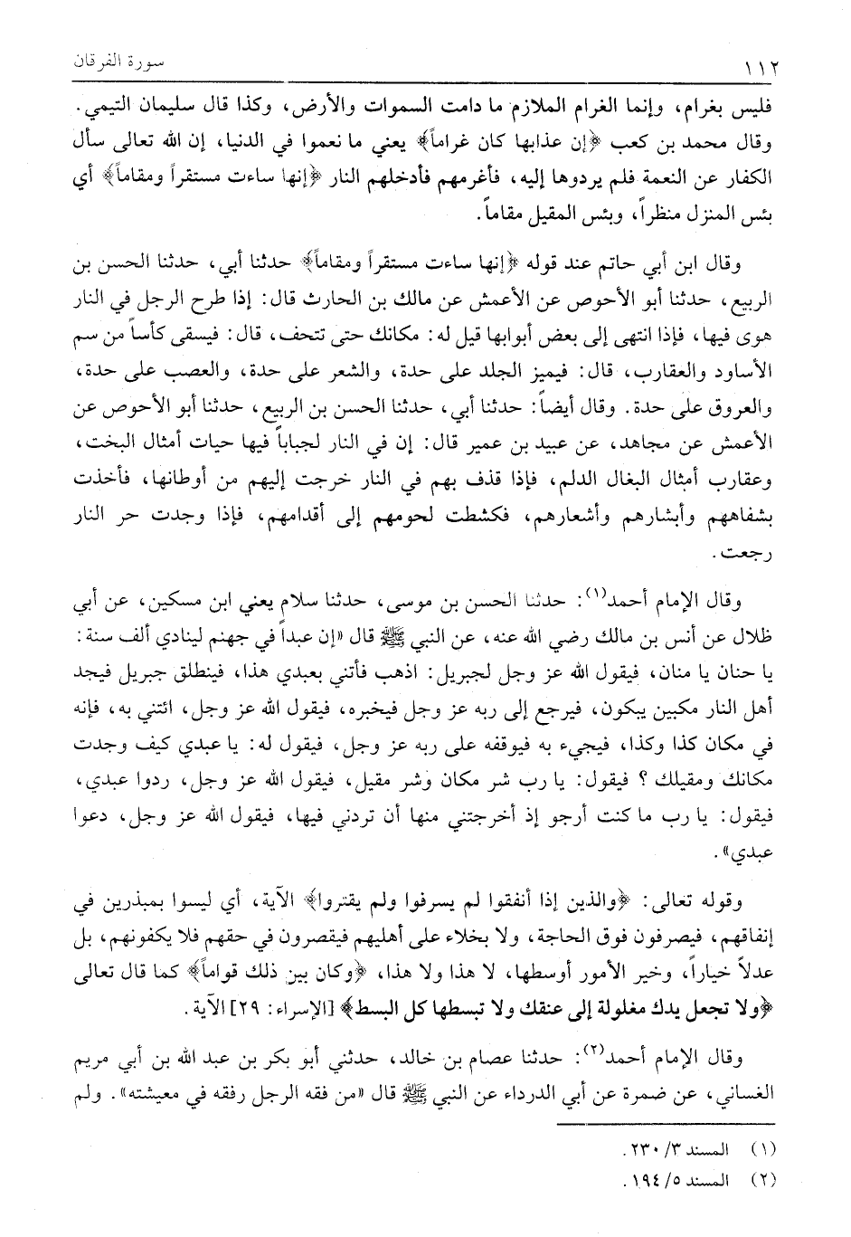 وقوله تعالى: وَالَّذِينَ إِذا أَنْفَقُوا لَمْ يُسْرِفُوا وَلَمْ يَقْتُرُوا الآية، أَيْ لَيْسُوا بِمُبَذِّرِينَ فِي إِنْفَاقِهِمْ، فَيَصْرِفُونَ فَوْقَ الْحَاجَةِ، وَلَا بُخَلَاءَ عَلَى أَهْلِيهِمْ فَيُقَصِّرُونَ فِي حَقِّهِمْ فَلَا يَكْفُونَهُمْ، بَلْ عَدْلًا خِيَارًا، وَخَيْرُ الْأُمُورِ أَوْسَطُهَا، لَا هَذَا وَلَا هَذَا، وَكانَ بَيْنَ ذلِكَ قَواماً كما قال تَعَالَى وَلا تَجْعَلْ يَدَكَ مَغْلُولَةً إِلى عُنُقِكَ وَلا تَبْسُطْها كُلَّ الْبَسْطِ [الإسراء: 29] الآية.