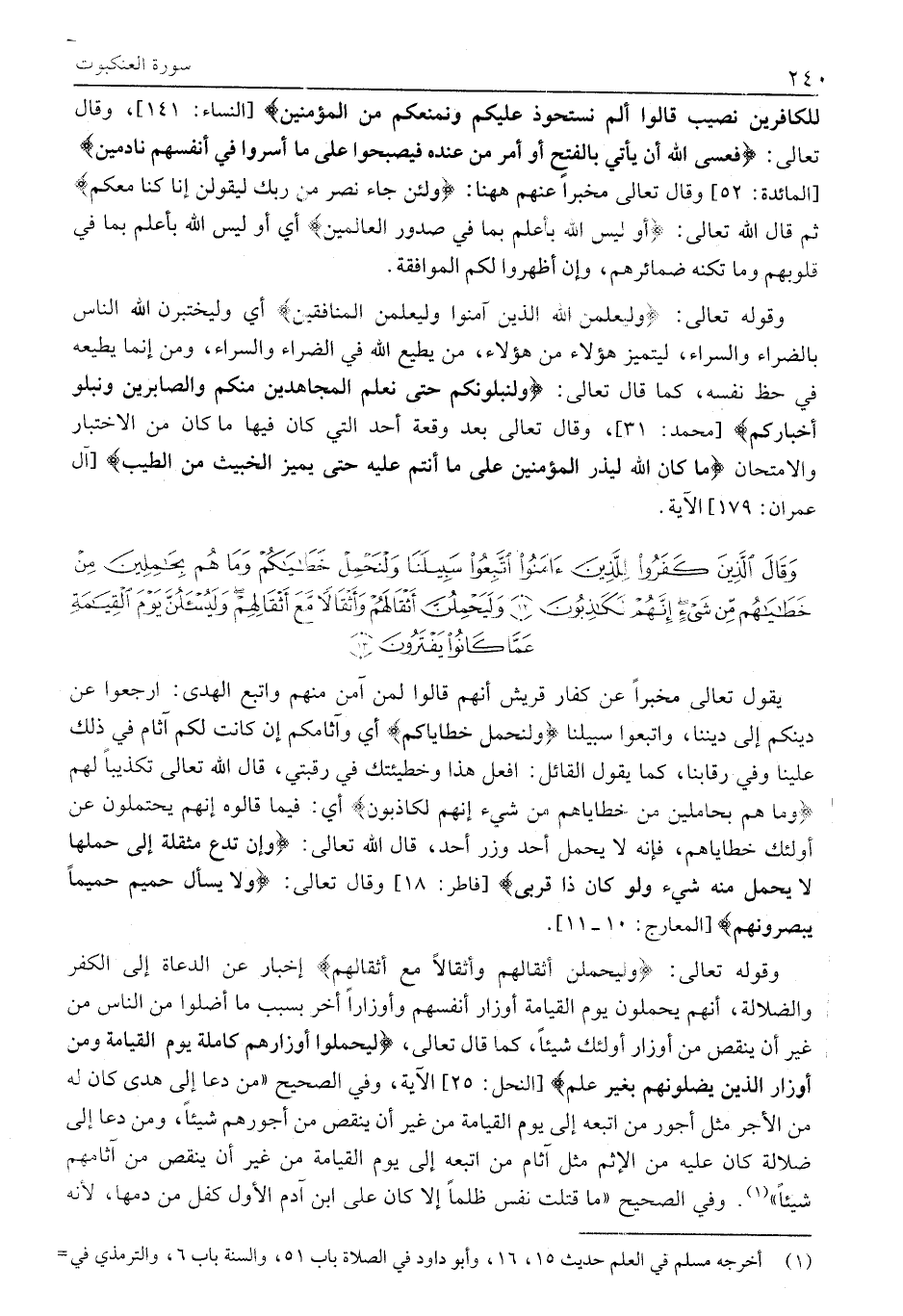 وَقالَ الَّذِينَ كَفَرُوا لِلَّذِينَ آمَنُوا اتَّبِعُوا سَبِيلَنا وَلْنَحْمِلْ خَطاياكُمْ وَما هُمْ بِحامِلِينَ مِنْ خَطاياهُمْ مِنْ شَيْءٍ إِنَّهُمْ لَكاذِبُونَ (12) وَلَيَحْمِلُنَّ أَثْقالَهُمْ وَأَثْقالاً مَعَ أَثْقالِهِمْ وَلَيُسْئَلُنَّ يَوْمَ الْقِيامَةِ عَمَّا كانُوا يَفْتَرُونَ (13)