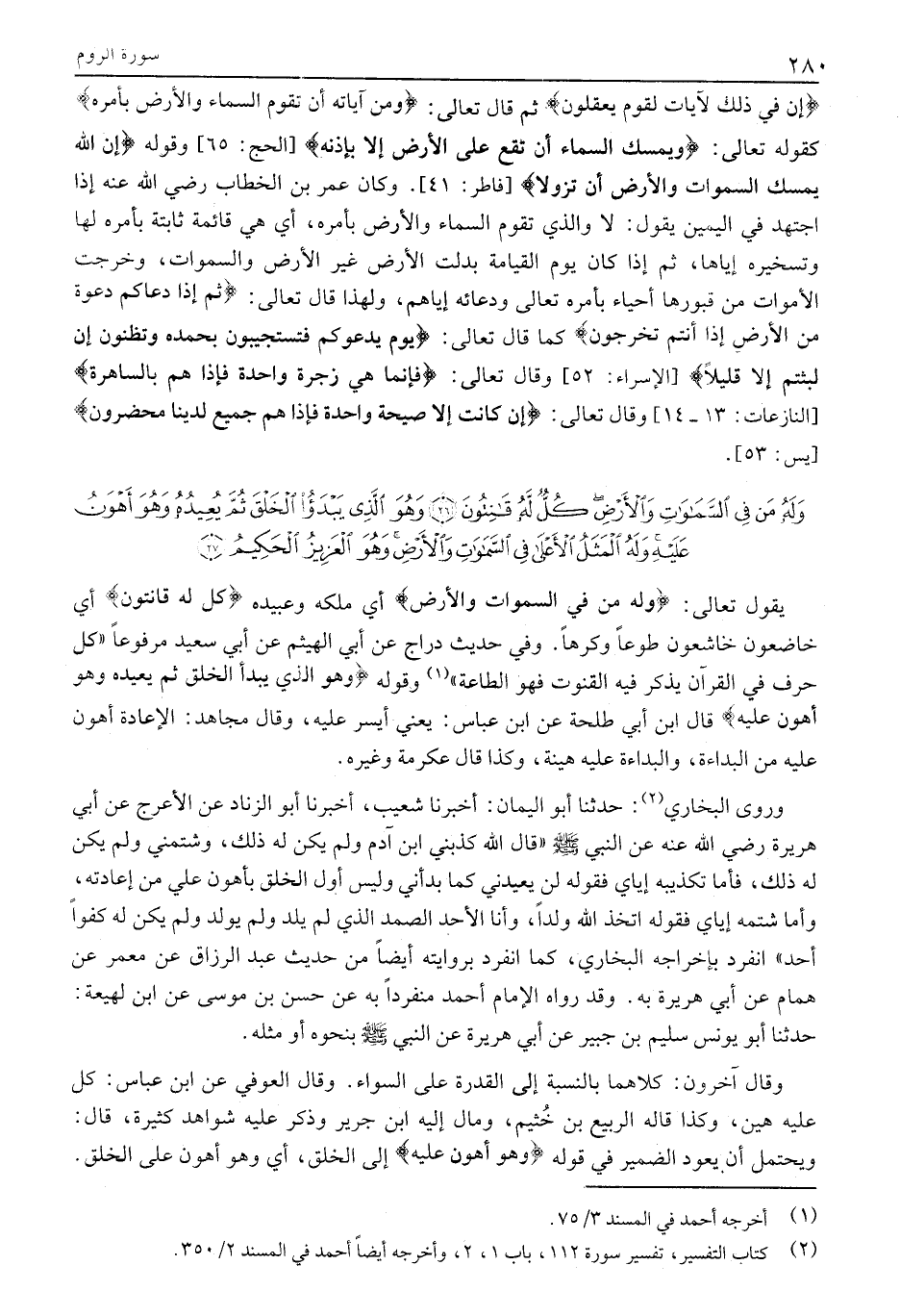 (2) كتاب التفسير، تفسير سورة 112، باب 1، 2، وأخرجه أيضا أحمد في المسند 2/ 350.