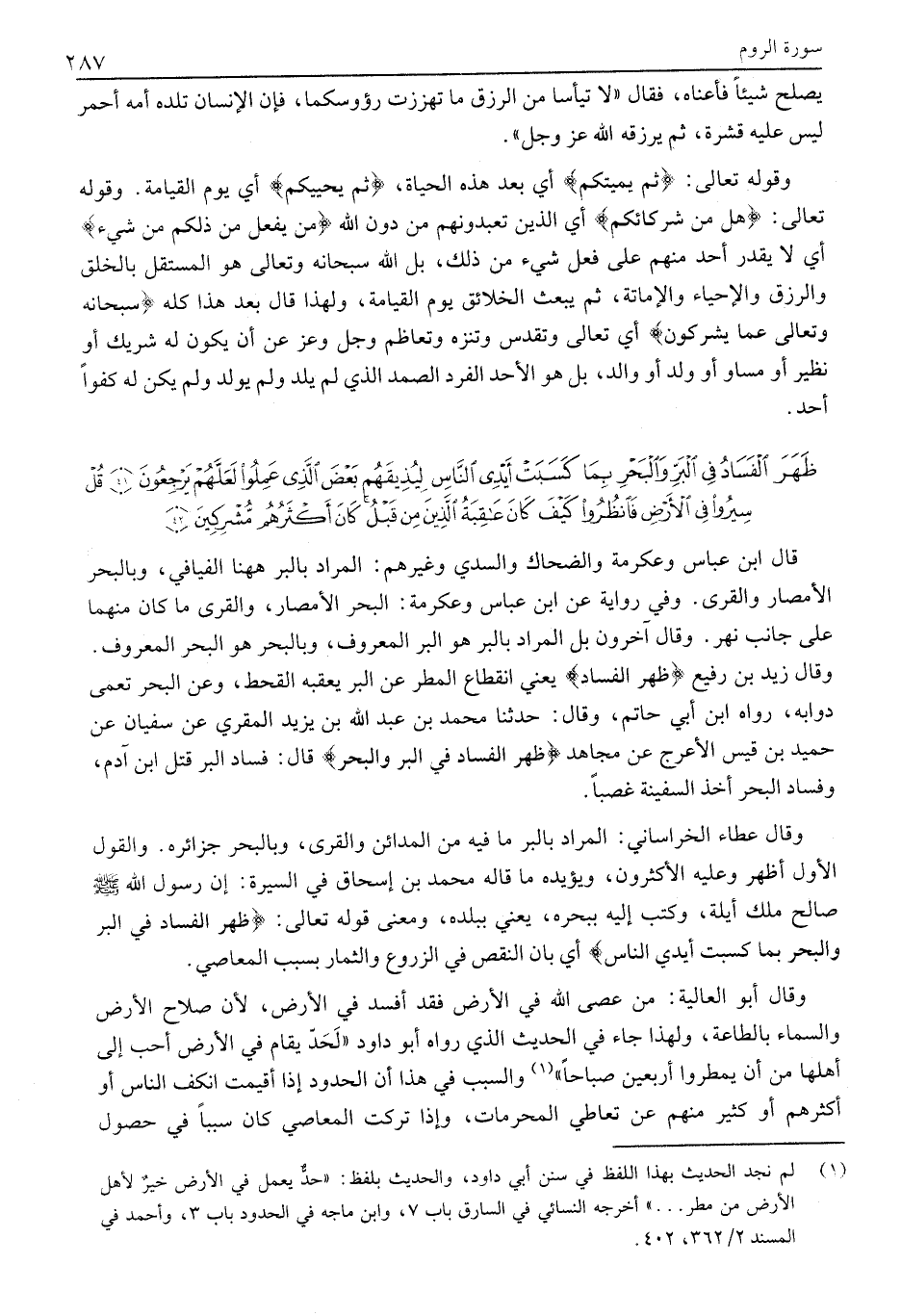 ظَهَرَ الْفَسادُ فِي الْبَرِّ وَالْبَحْرِ بِما كَسَبَتْ أَيْدِي النَّاسِ لِيُذِيقَهُمْ بَعْضَ الَّذِي عَمِلُوا لَعَلَّهُمْ يَرْجِعُونَ (41) قُلْ سِيرُوا فِي الْأَرْضِ فَانْظُرُوا كَيْفَ كانَ عاقِبَةُ الَّذِينَ مِنْ قَبْلُ كانَ أَكْثَرُهُمْ مُشْرِكِينَ (42)
