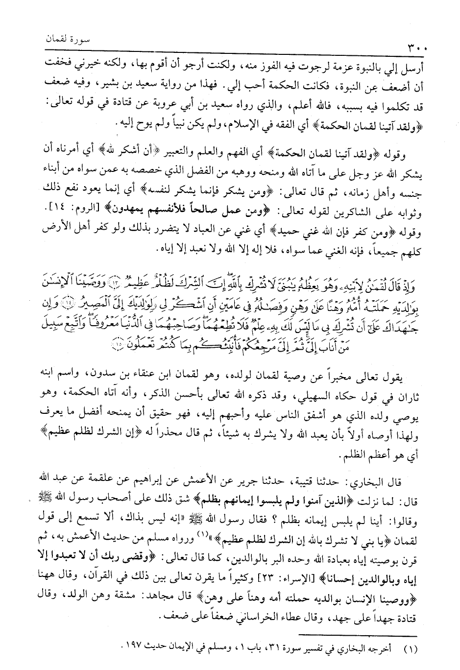 (1) أخرجه البخاري في تفسير سورة 31، باب 1، ومسلم في الإيمان حديث 197.