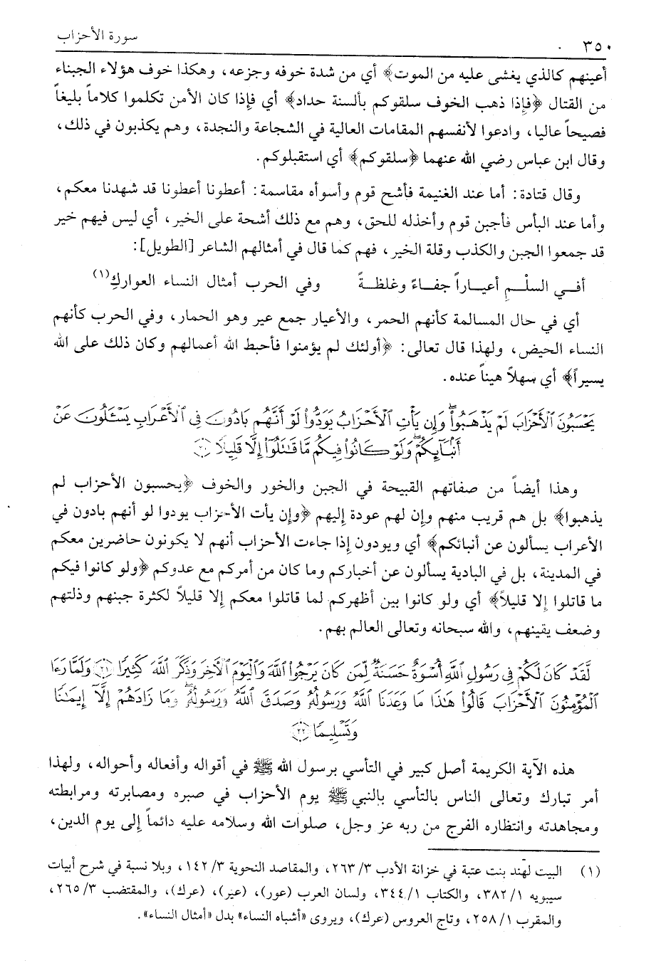 لَقَدْ كانَ لَكُمْ فِي رَسُولِ اللَّهِ أُسْوَةٌ حَسَنَةٌ لِمَنْ كانَ يَرْجُوا اللَّهَ وَالْيَوْمَ الْآخِرَ وَذَكَرَ اللَّهَ كَثِيراً (21) وَلَمَّا رَأَ الْمُؤْمِنُونَ الْأَحْزابَ قالُوا هَذَا مَا وَعَدَنَا اللَّهُ وَرَسُولُهُ وَصَدَقَ اللَّهُ وَرَسُولُهُ وَما زادَهُمْ إِلاَّ إِيماناً وَتَسْلِيماً (22)