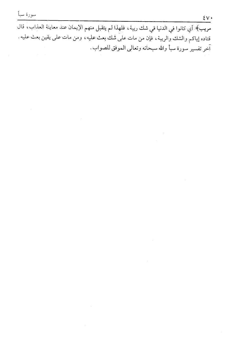 آخَرُ تَفْسِيرِ سورة سبأ والله سبحانه وتعالى الموفق للصواب.