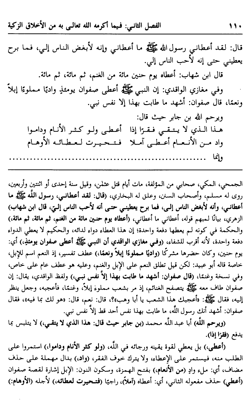 وفي مغازي الواقدي: إن النبي -صلى الله عليه وسلم- أعطى صفوان يومئذ واديًا مملوءًا إبلًا ونعمًا، قال صفوان: أشهد ما طابت بهذا إلا نفس نبي.