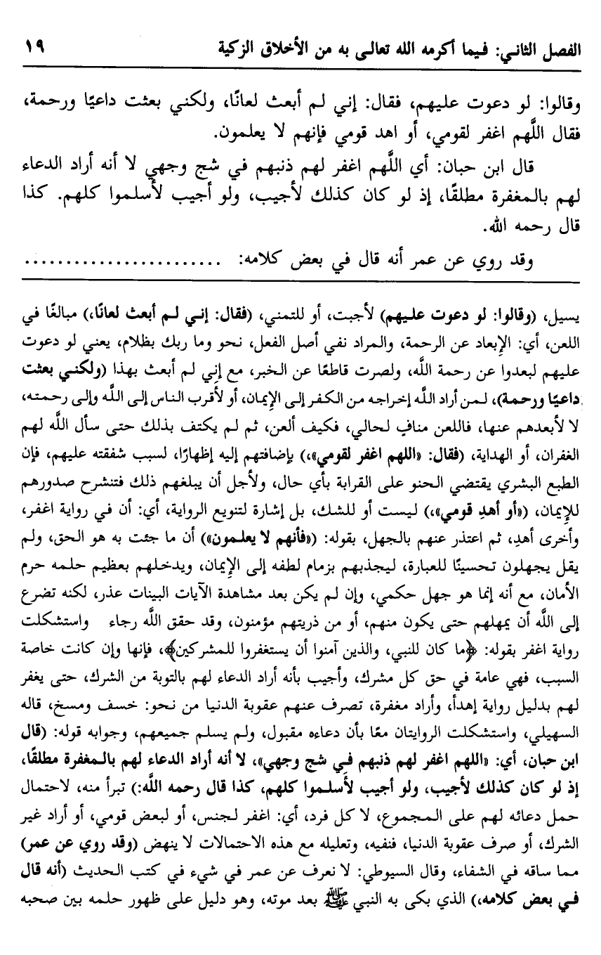 قال ابن حبان: أي: اللهم اغفر لهم ذنبهم في شج وجهي, لا أنه أراد الدعاء لهم بالمغفرة مطلقًا؛ إذ لو كان كذلك لأجيب، ولو أجيب لأسلموا كلهم. كذا قال رحمه الله.