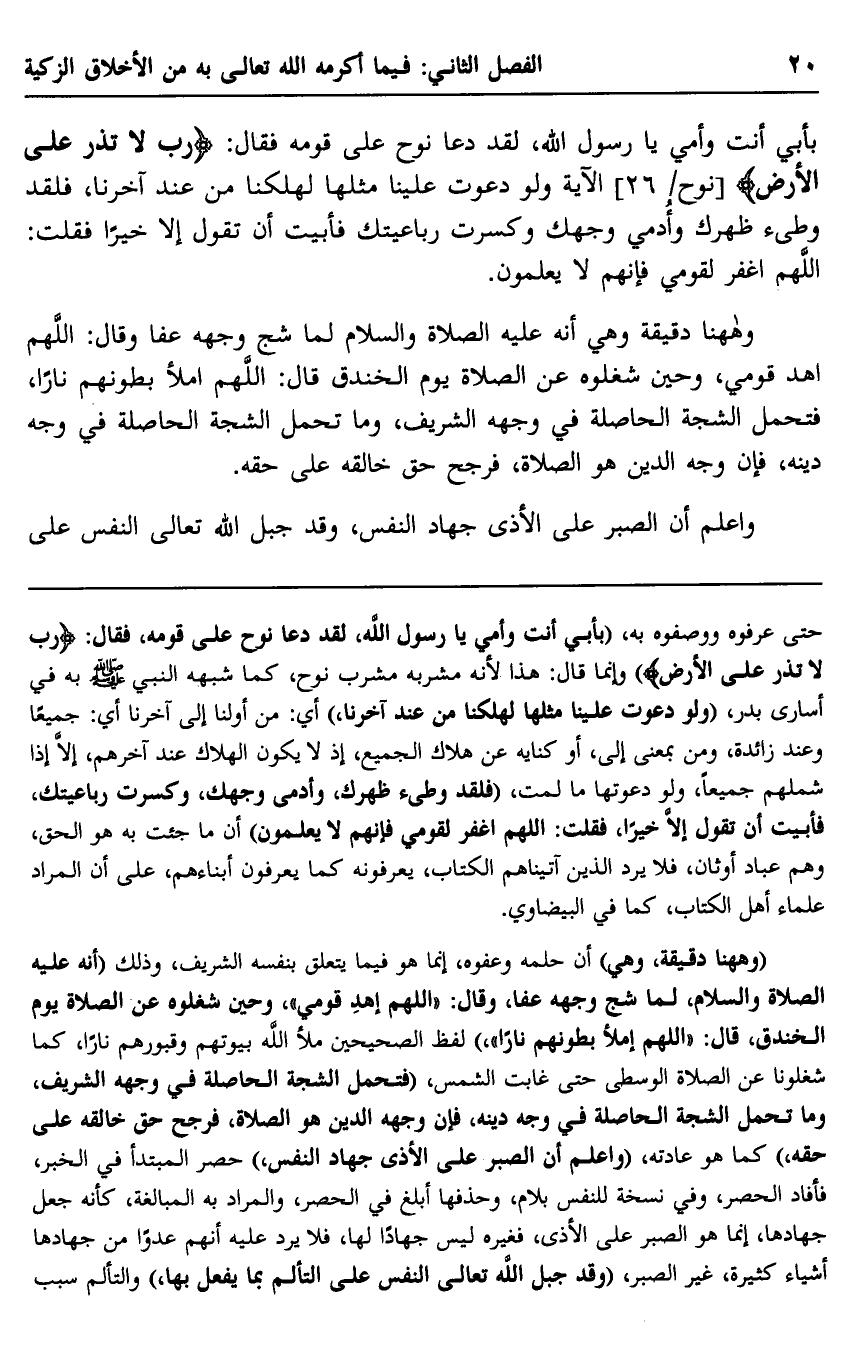 وههنا دقيقة وهي أنه -عليه الصلاة والسلام- لما شجَّ وجهه عفا وقال: اللهم اهد قومي، وحين شغلوه عن الصلاة يوم الخندق قال: "اللهم املأ بطونهم نارًا"، فتَحَمَّل الشجَّة الحاصلة في وجهه الشريف، وما تحمَّل الشجة الحاصلة في وجه دينه، فإن وجه الدين هو الصلاة، فرجَّح حق خالقه على حقه.