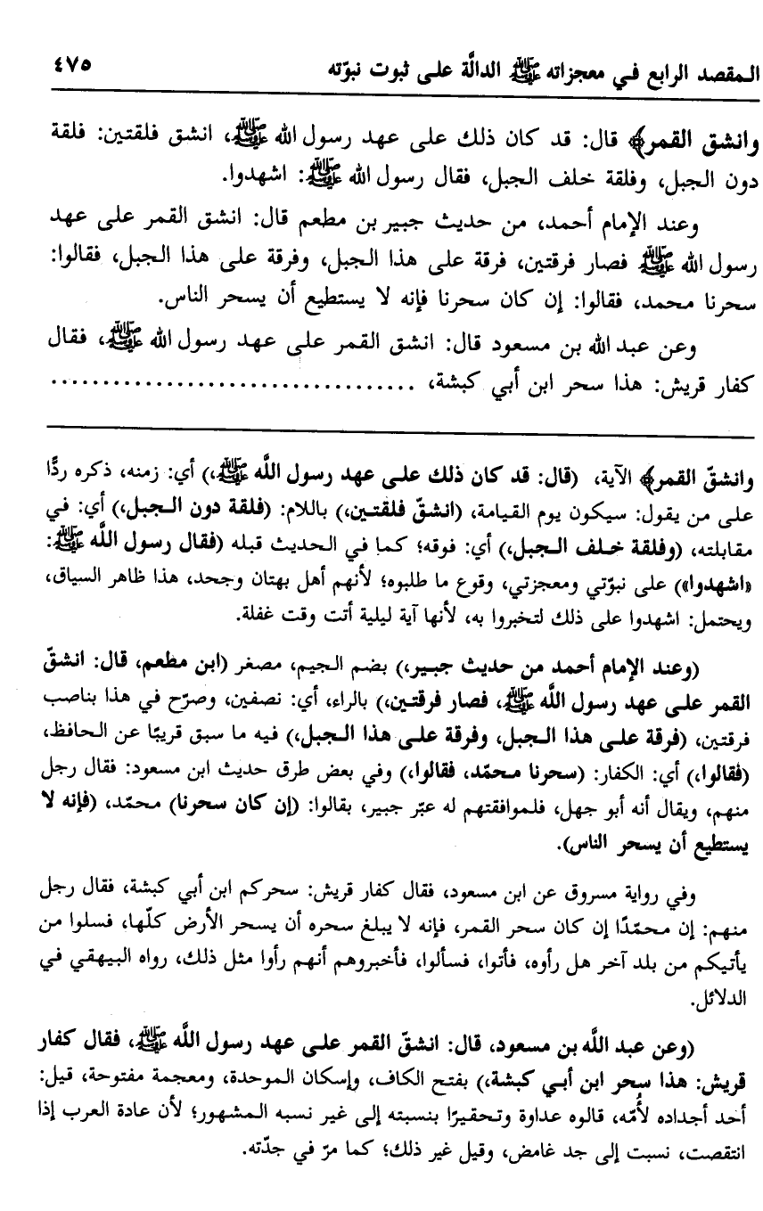 وعن عبد الله بن مسعود قال: انشقَّ القمر على عهد رسول الله -صلى الله عليه وسلم، فقال كفار قريش: هذا سحر ابن أبي كبشة،..............................................