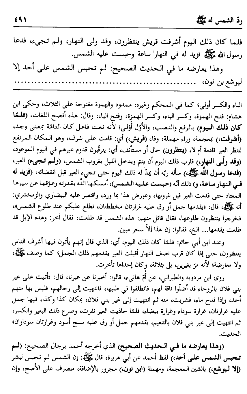 وهذا يعارضه ما في الحديث الصحيح: لم تحبس الشمس على أحد إلّا ليوشع بن نون،.......